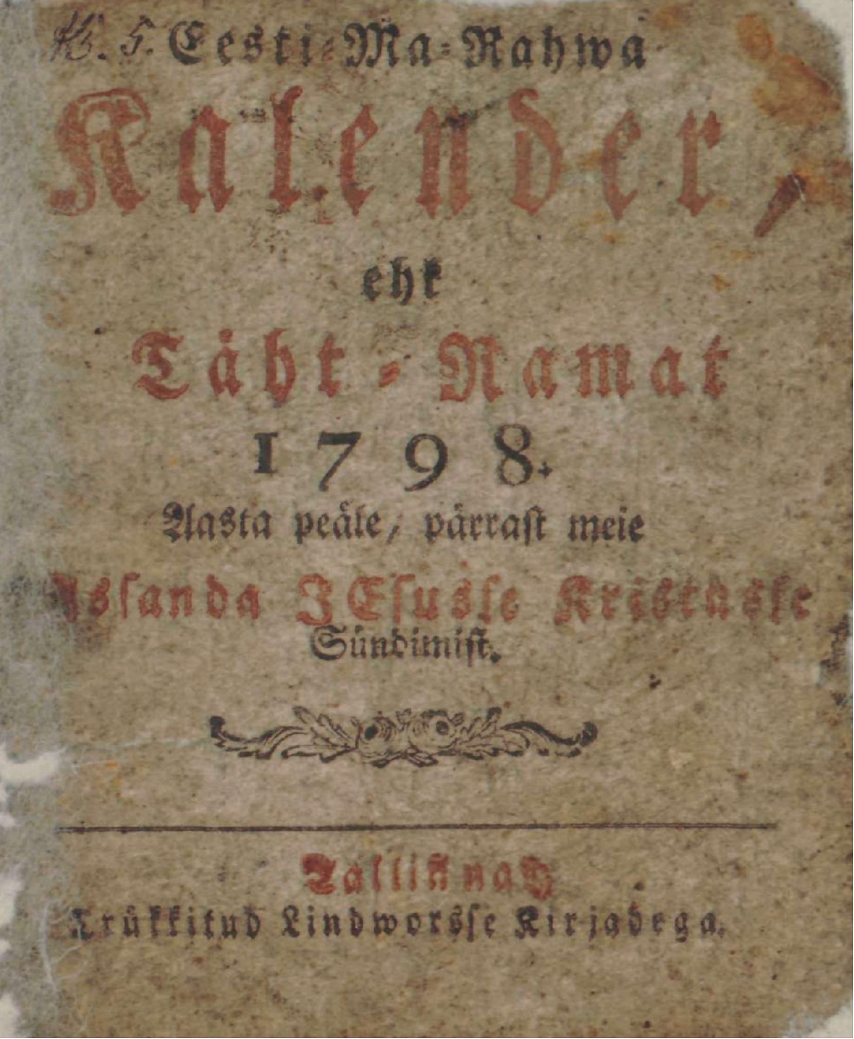 Eesti-Ma-Rahwa-Kalender, ehk Täht-Ramat 1798. Aasta peäle ...