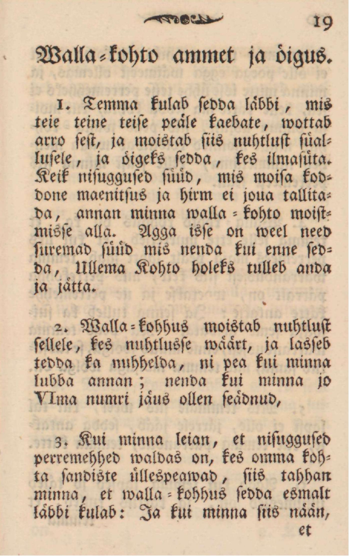 Esimene eestikeelne talurahvaseadus, millega fikseeriti talupoegade õigus vallasvarale, asutati vallakohtud ja piirati talupoegade müüki.