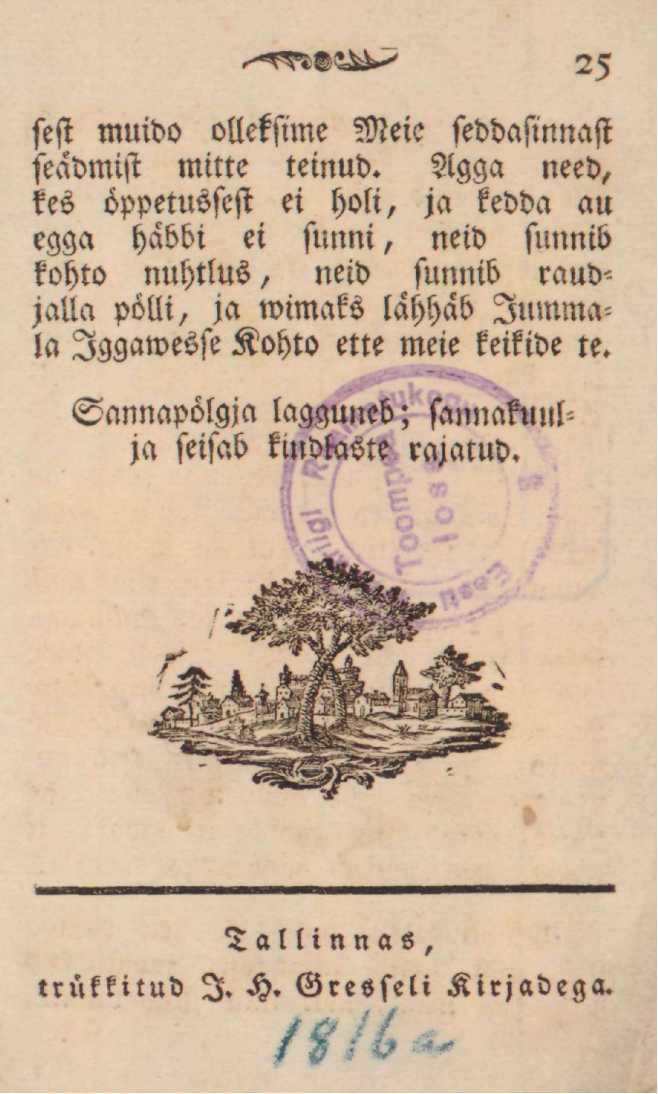 Ilmunud: Tallinn, s.n., 1802 (Tallinn, J.H. Gressel)]
