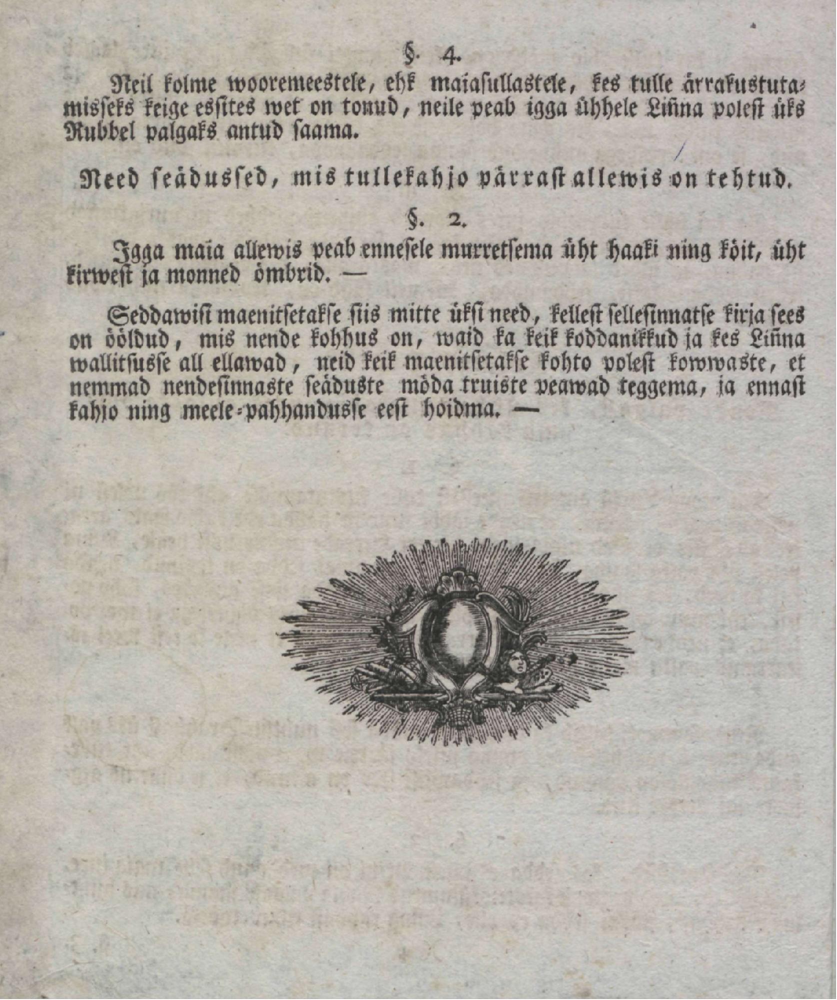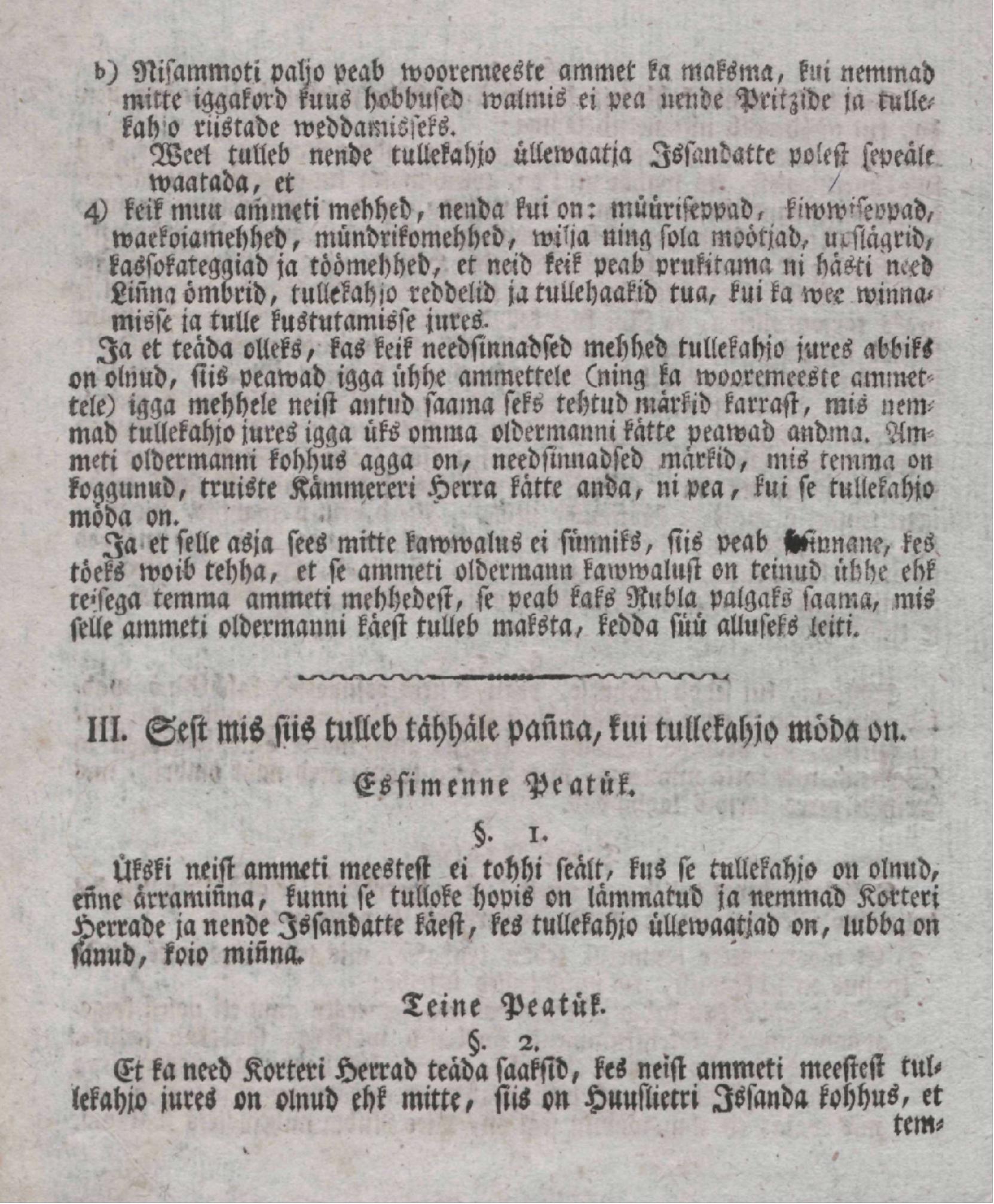 Monned öppetussed, mis sest seĂ€dussest wĂ€lja on wallitsetud, mis tullekahjo pĂ€rrast Kaiserlikko Tallinna ausa rae polest iggamehhele teĂ€da sai antud Jaani kuu ĂŒhheksateistkĂŒmnemal pÀÀwal 1797 aastal