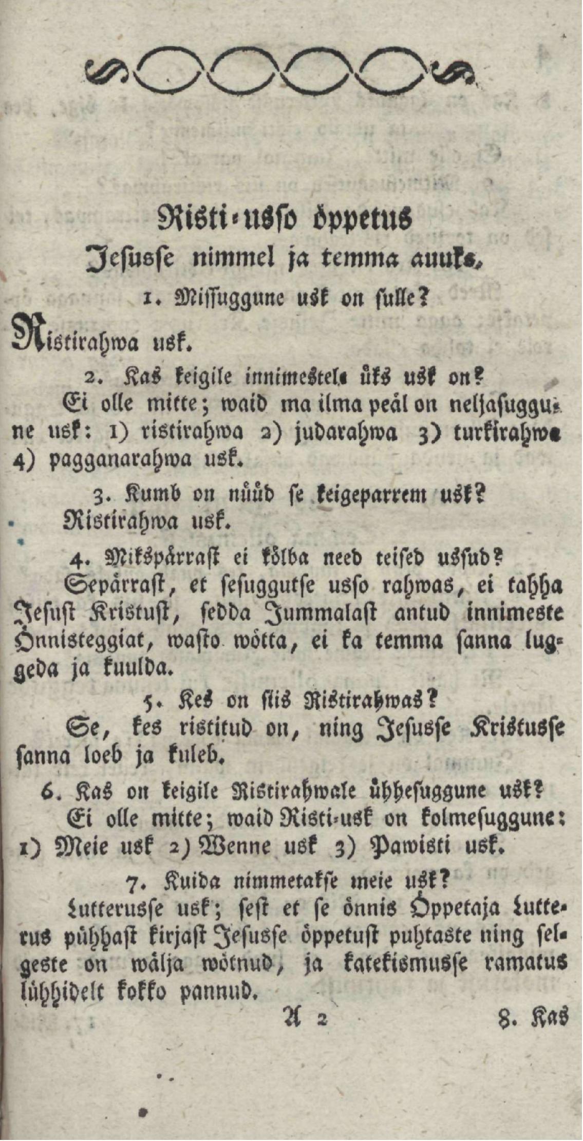 Grentsiuse trükikoja esimene eestikeelne raamat - Ristirahwa usso öppetus - 1790