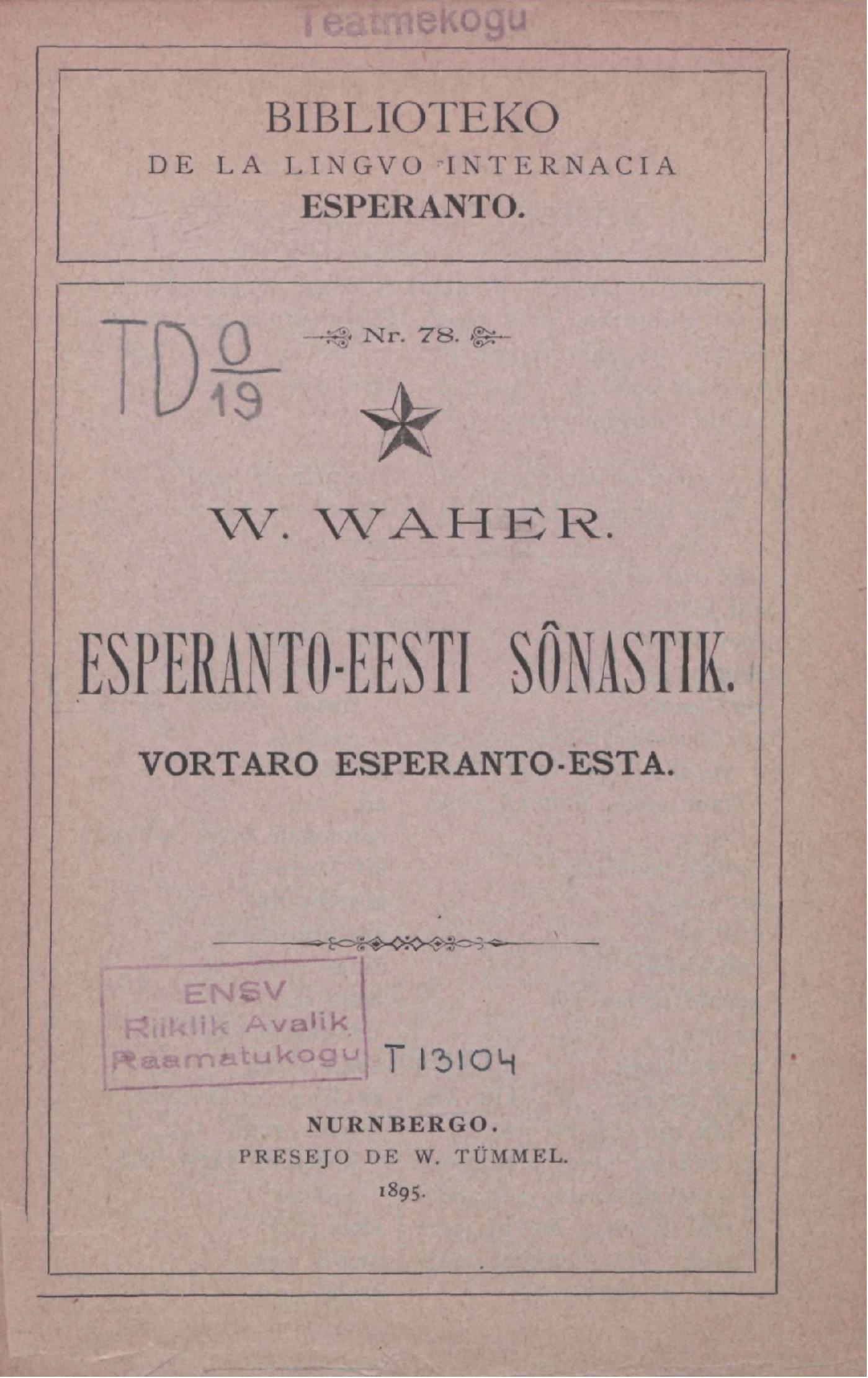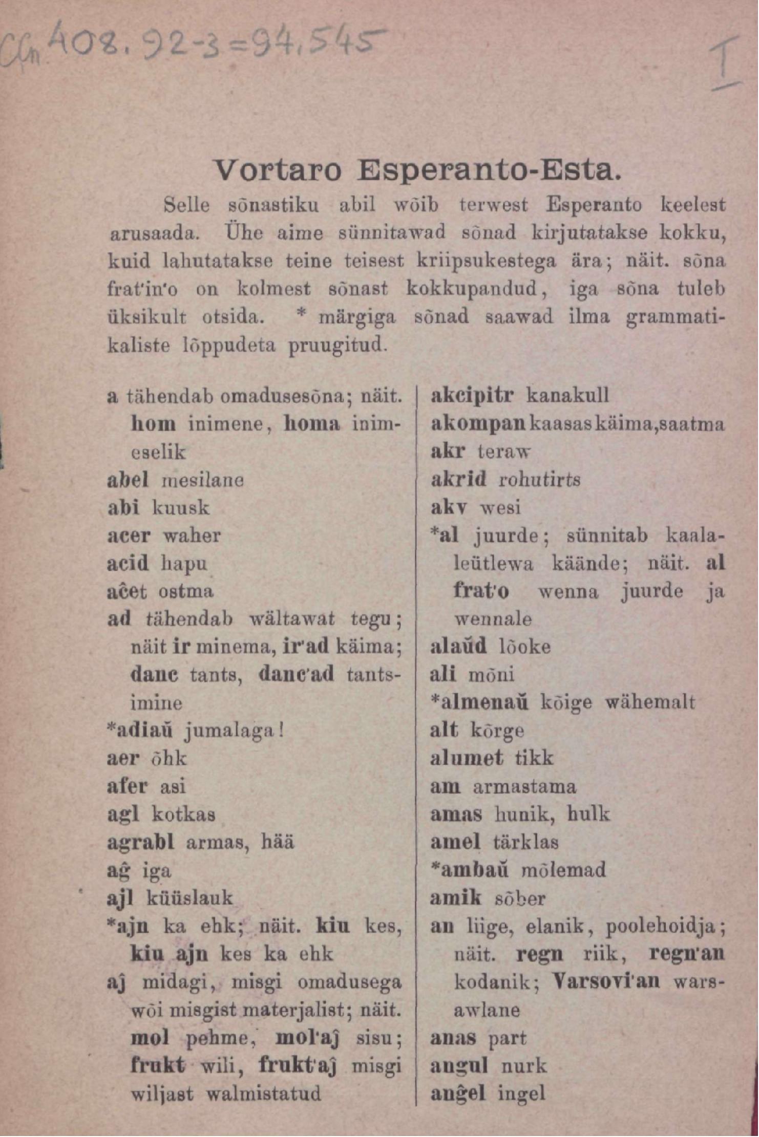 Esperanto-eesti sõnastik = Vortaro esperanto-esta 1895