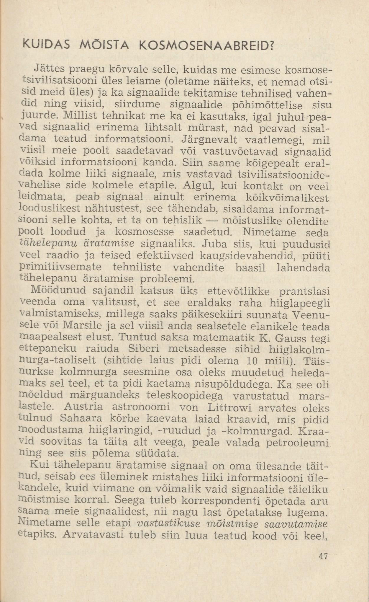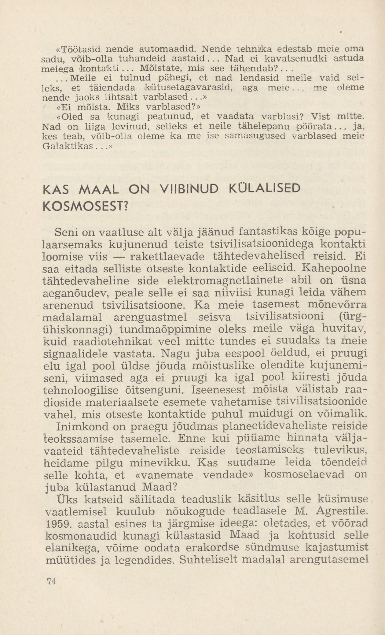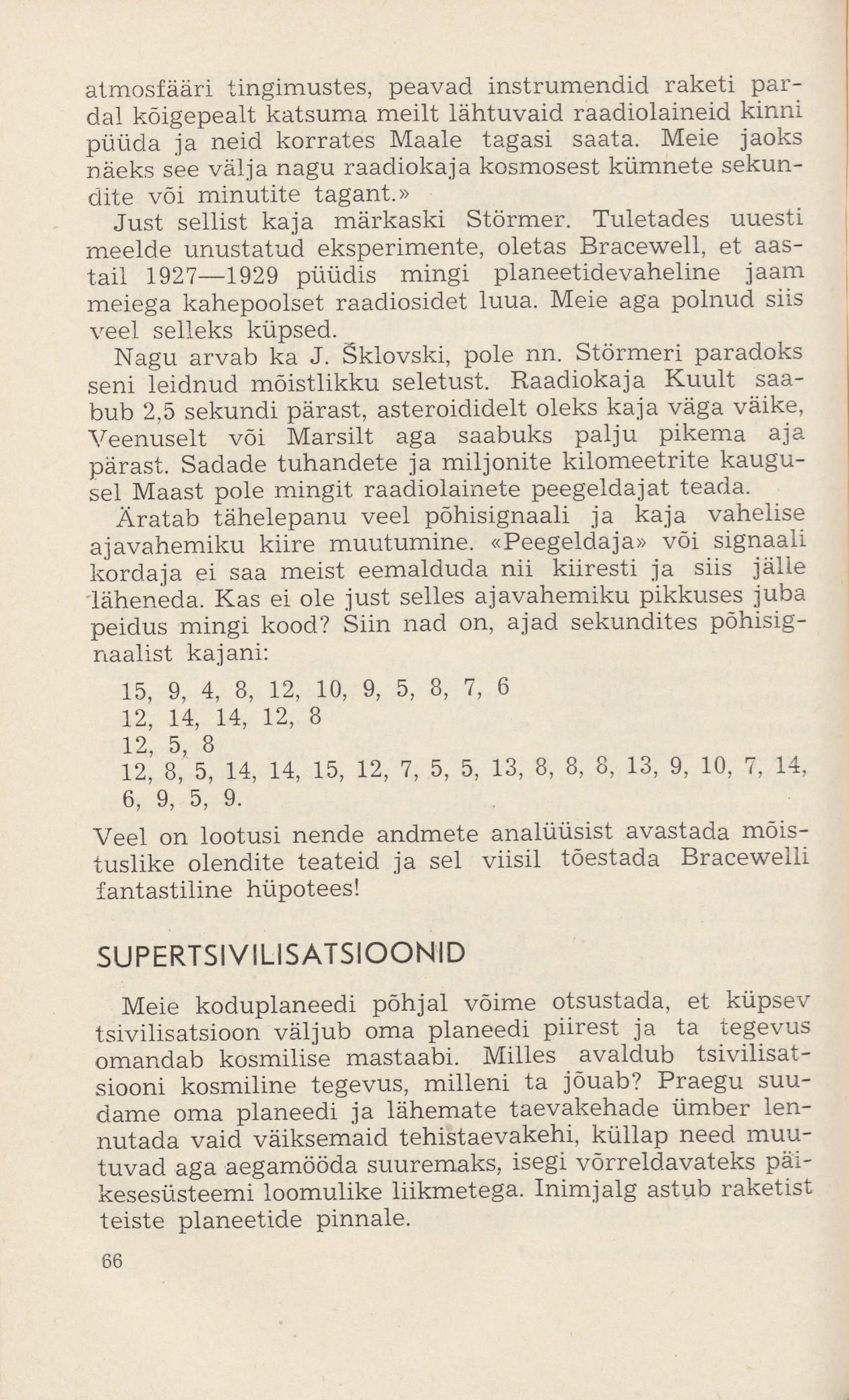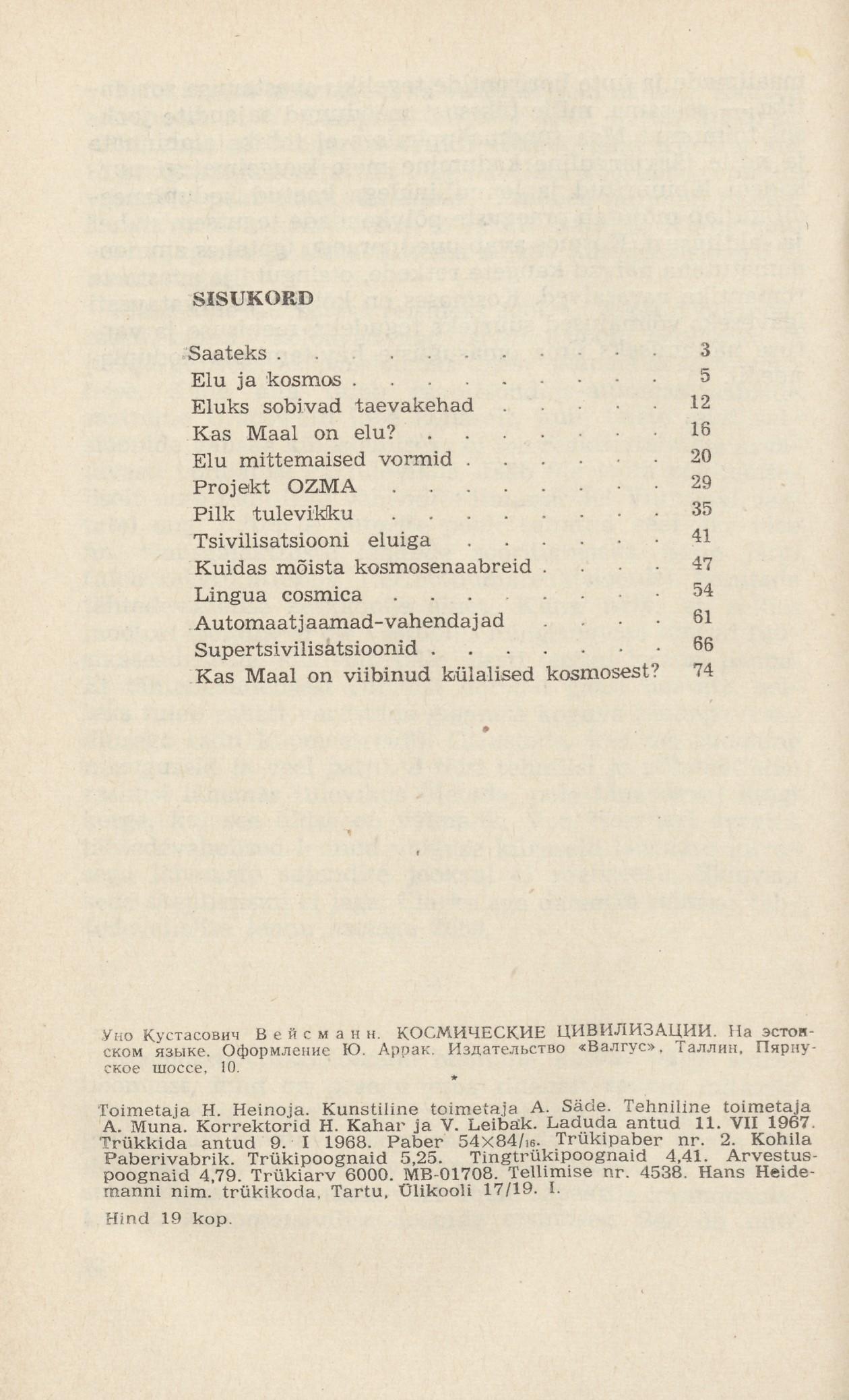 Kosmosetsivilisatsioonid Uno Veismannilt 1968
