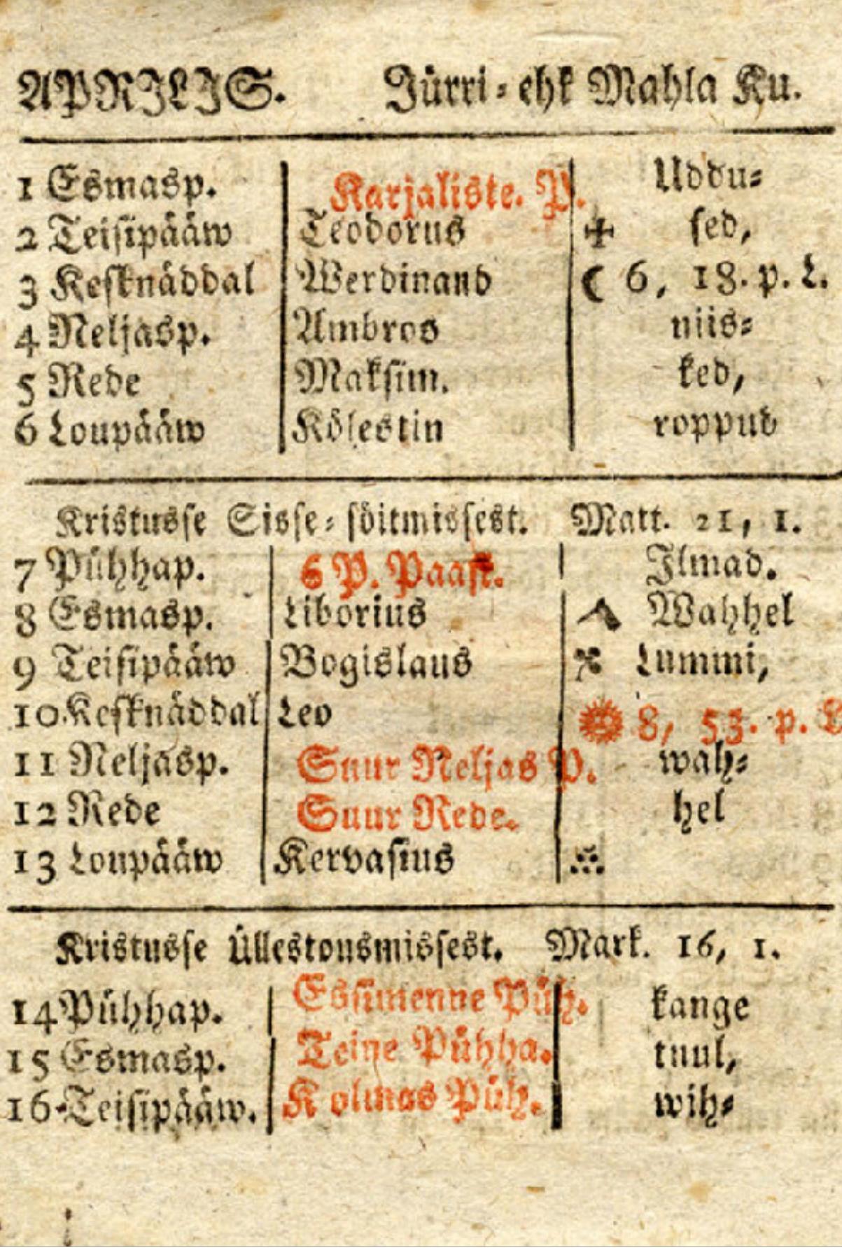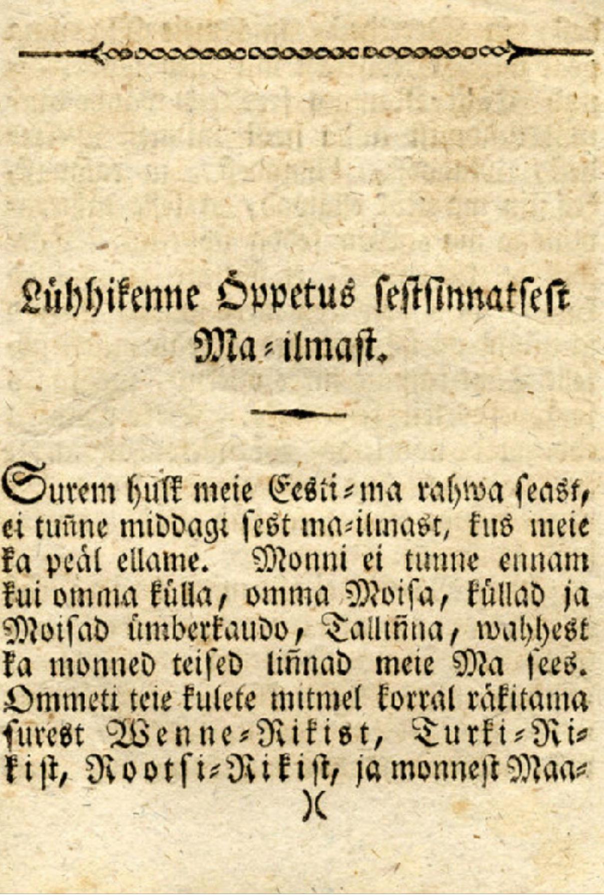 LĂĽhhikenne Ă–ppetus sestsinnatsest Mailmast - Minuthi kalendris 1806