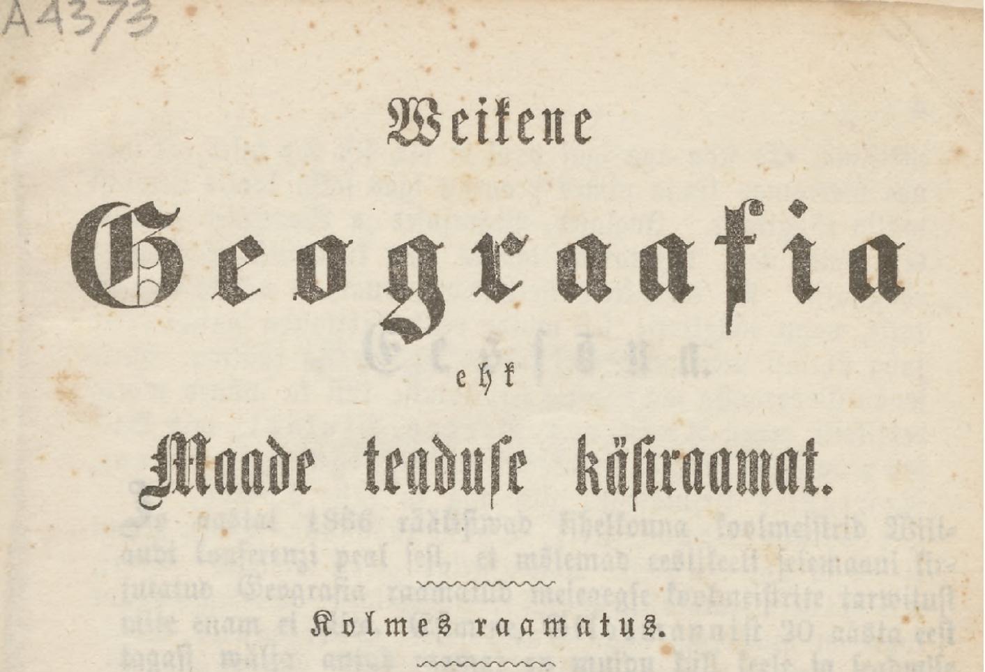 Üks esimesi eestikeelseid geograafiaõpikuid