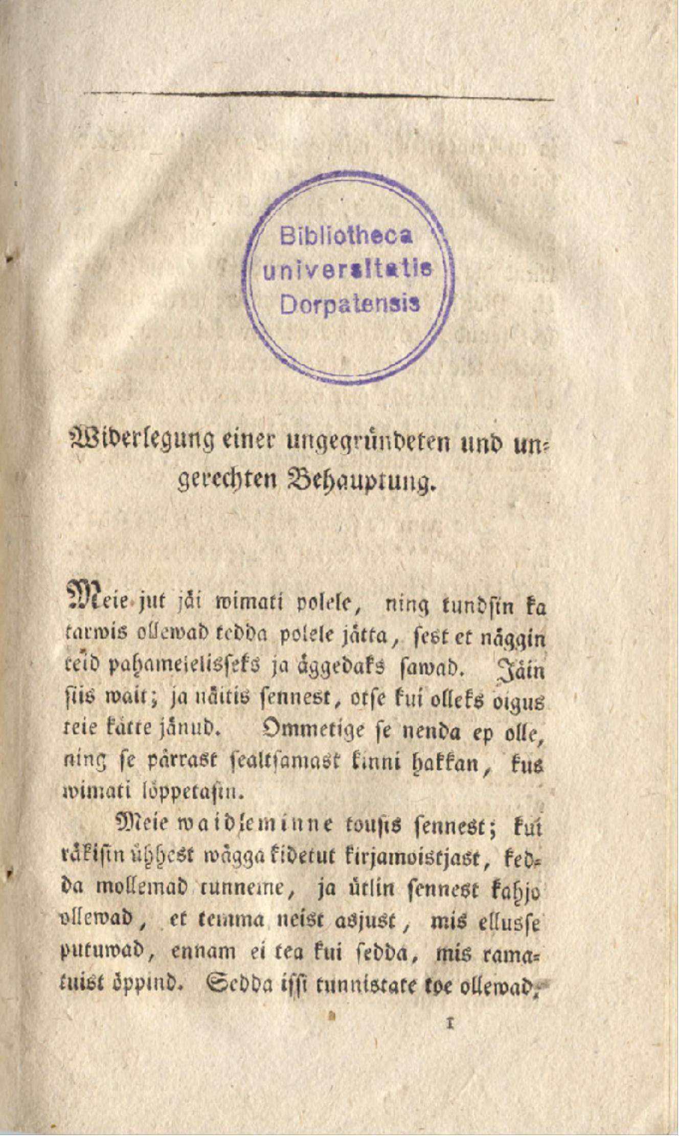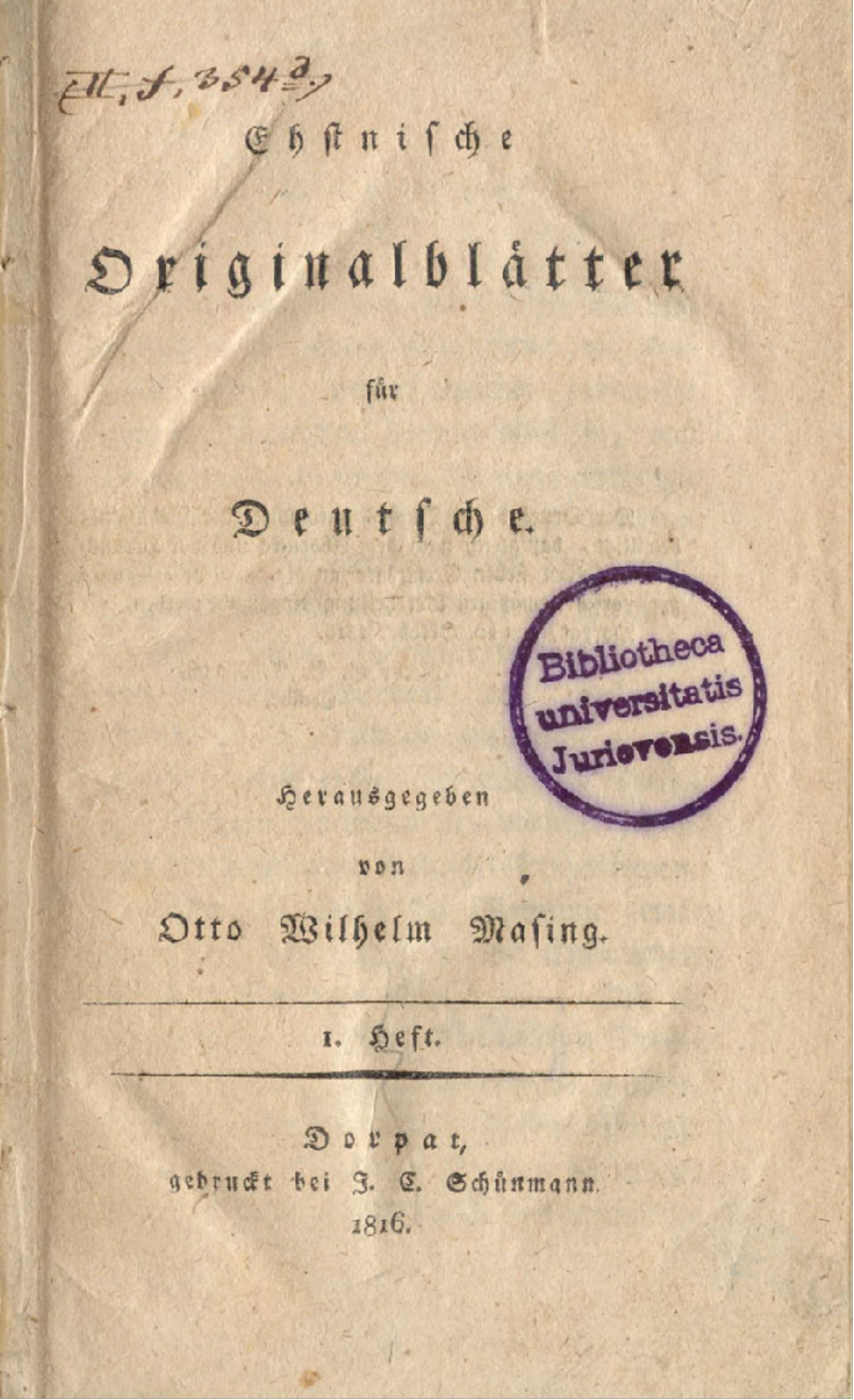 Ilmunud: Dorpat, 1816 (Dorpat, J. C. Schünmann).