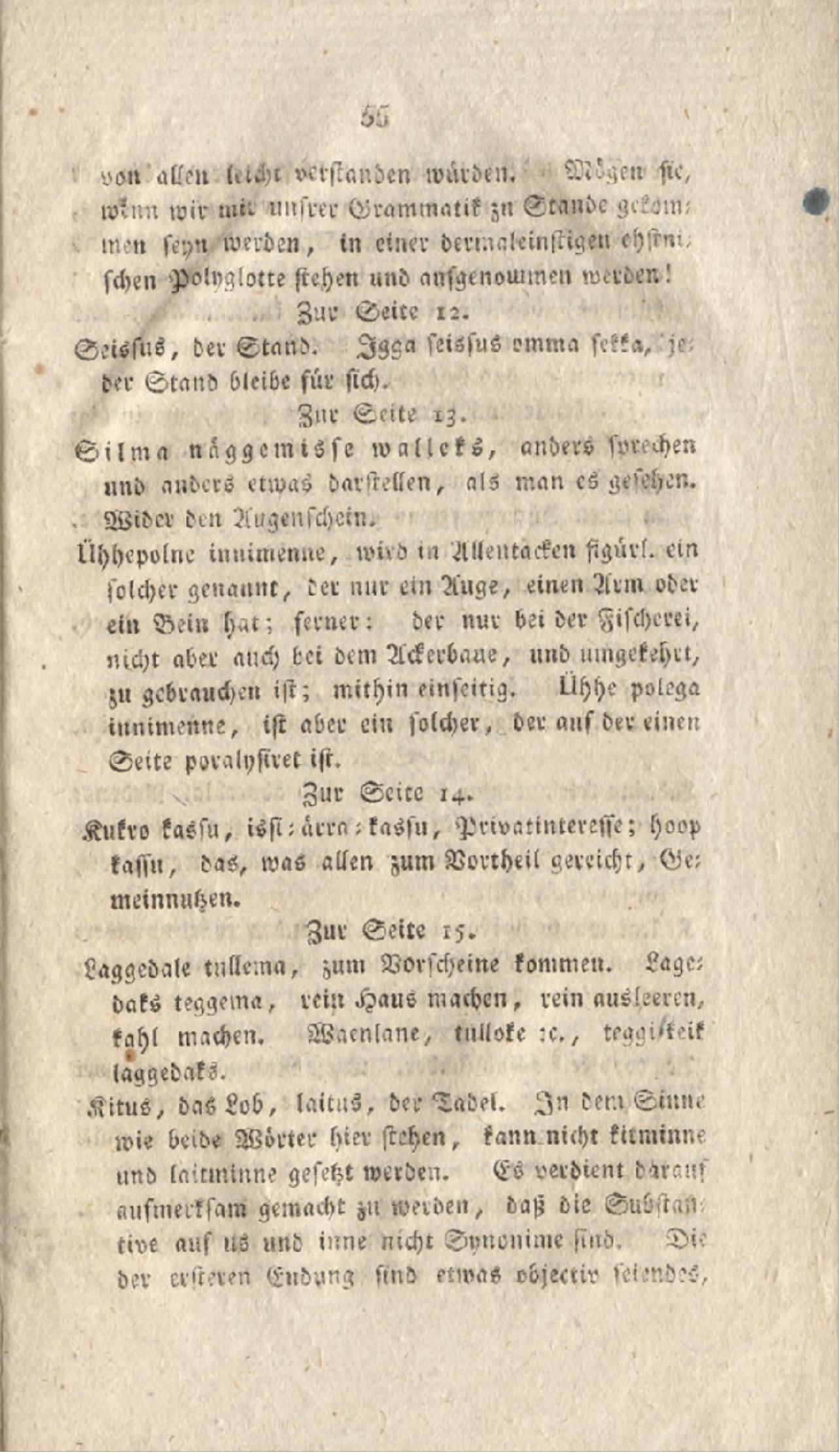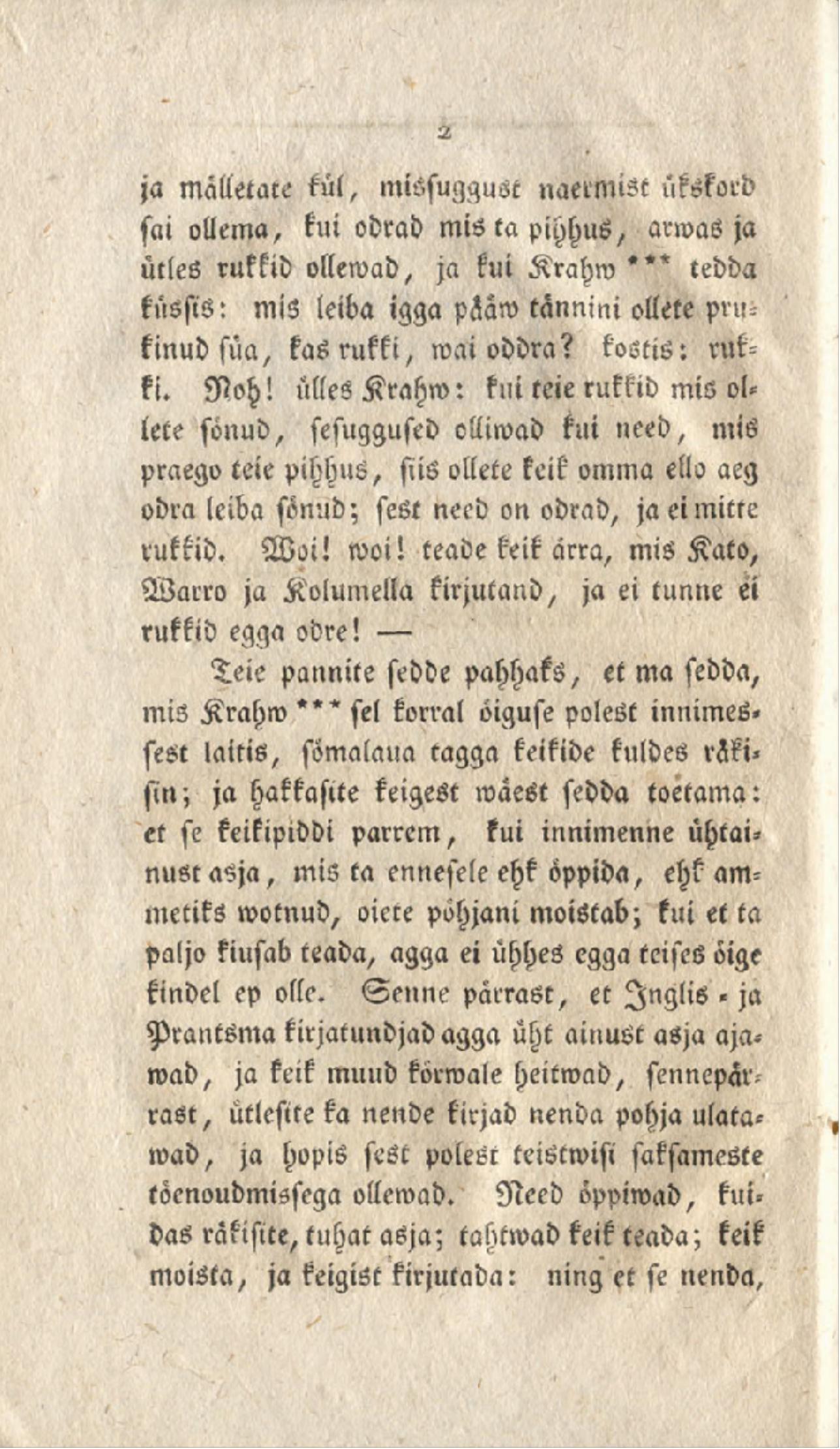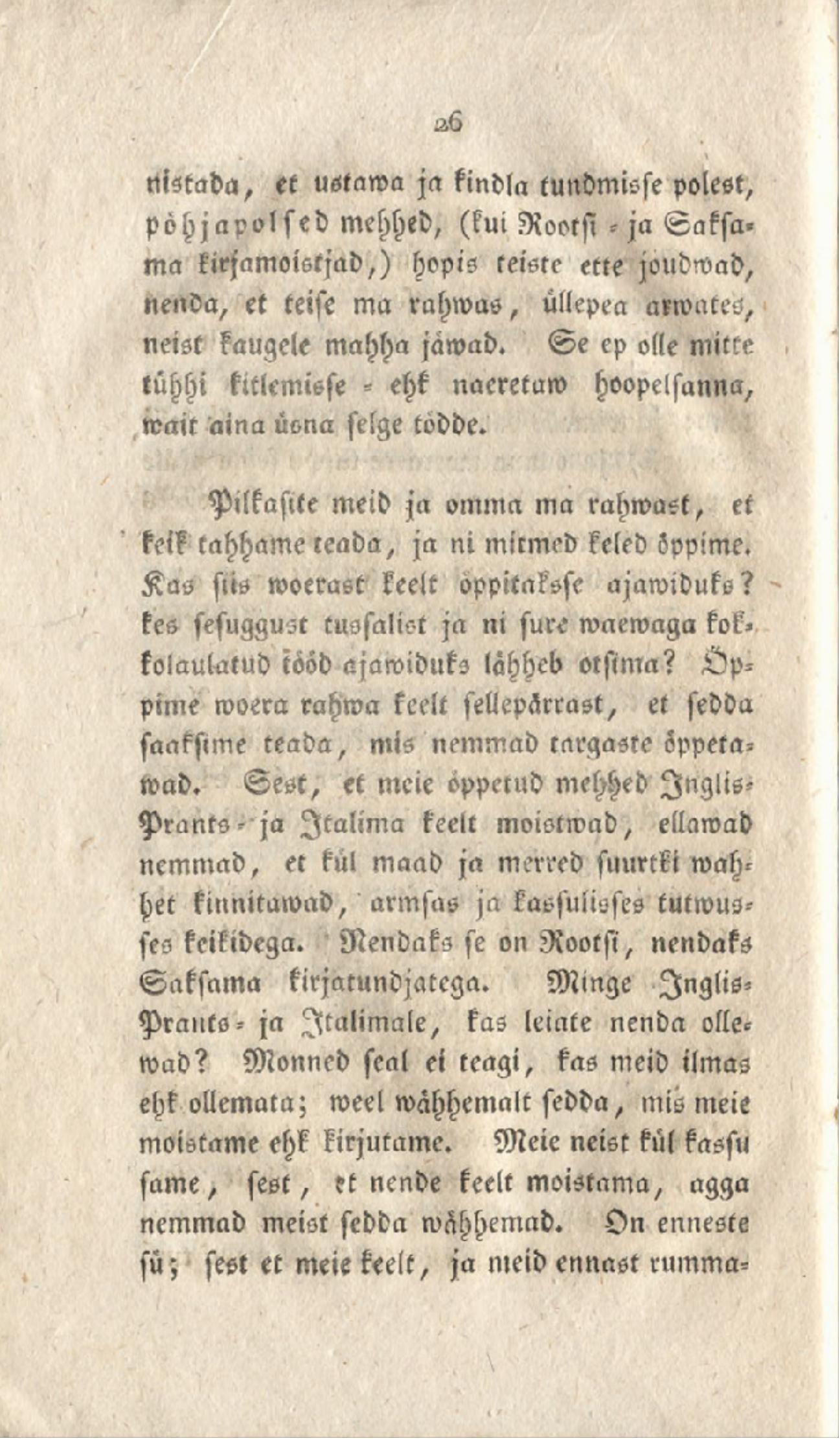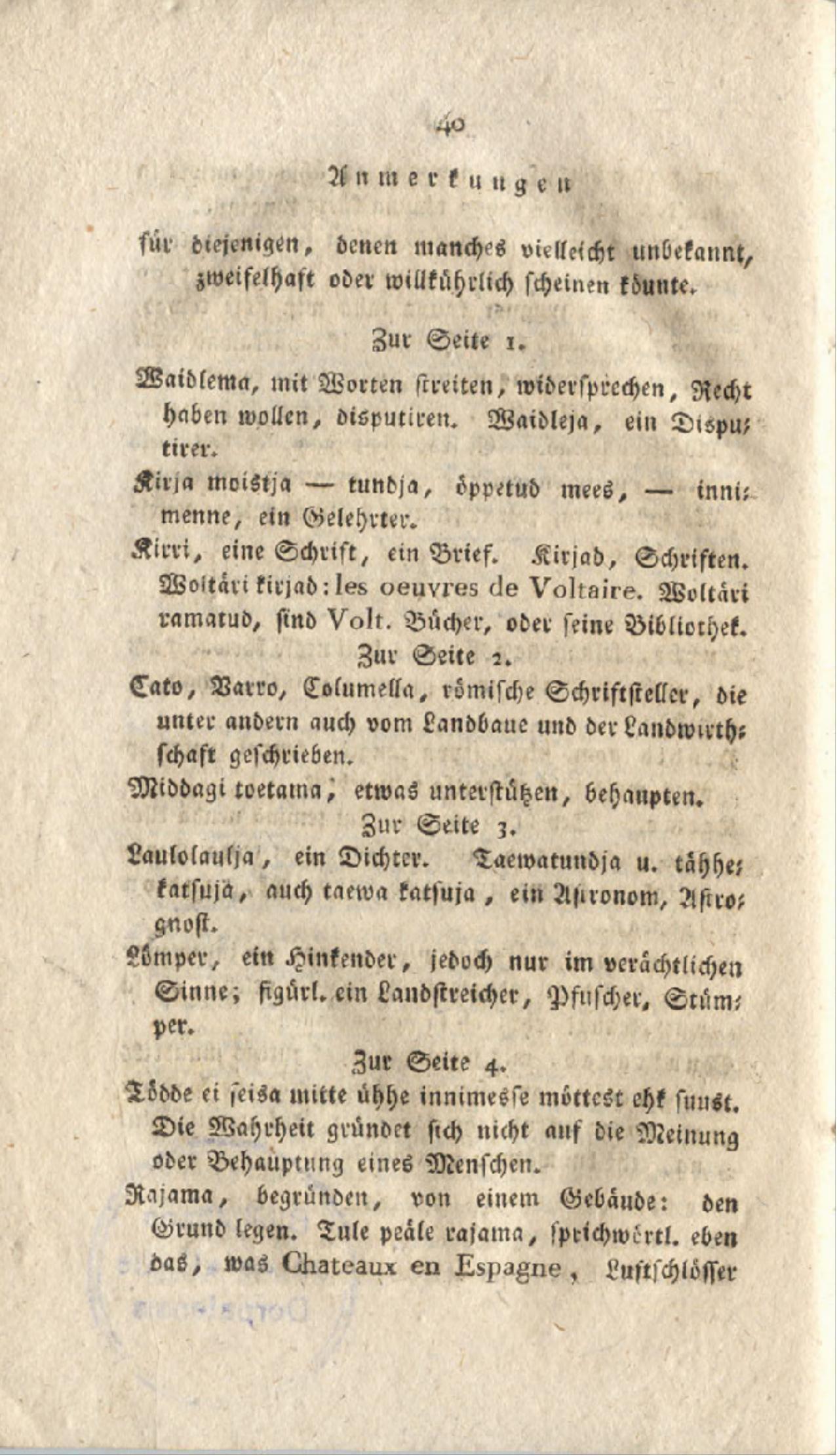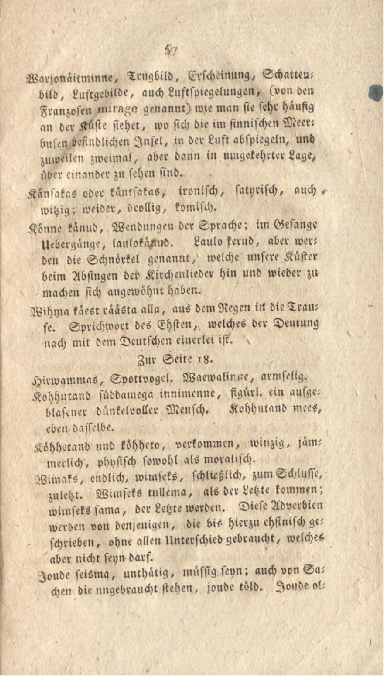 Esimene spetsiaalne eesti keele õppevahend talurahvaga suhtlevatele sakslastele. - Sisaldab eestikeelse vestluse saksa, inglise ja prantsuse kultuurist ja sõnaseletused. Sõnastikus on märgitud ka mõned astronoomiaga seotud mõisted.