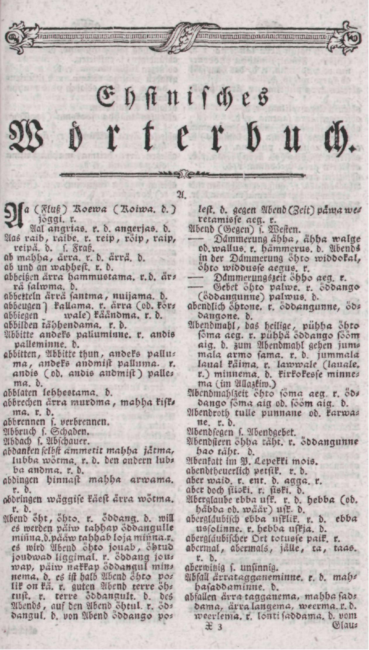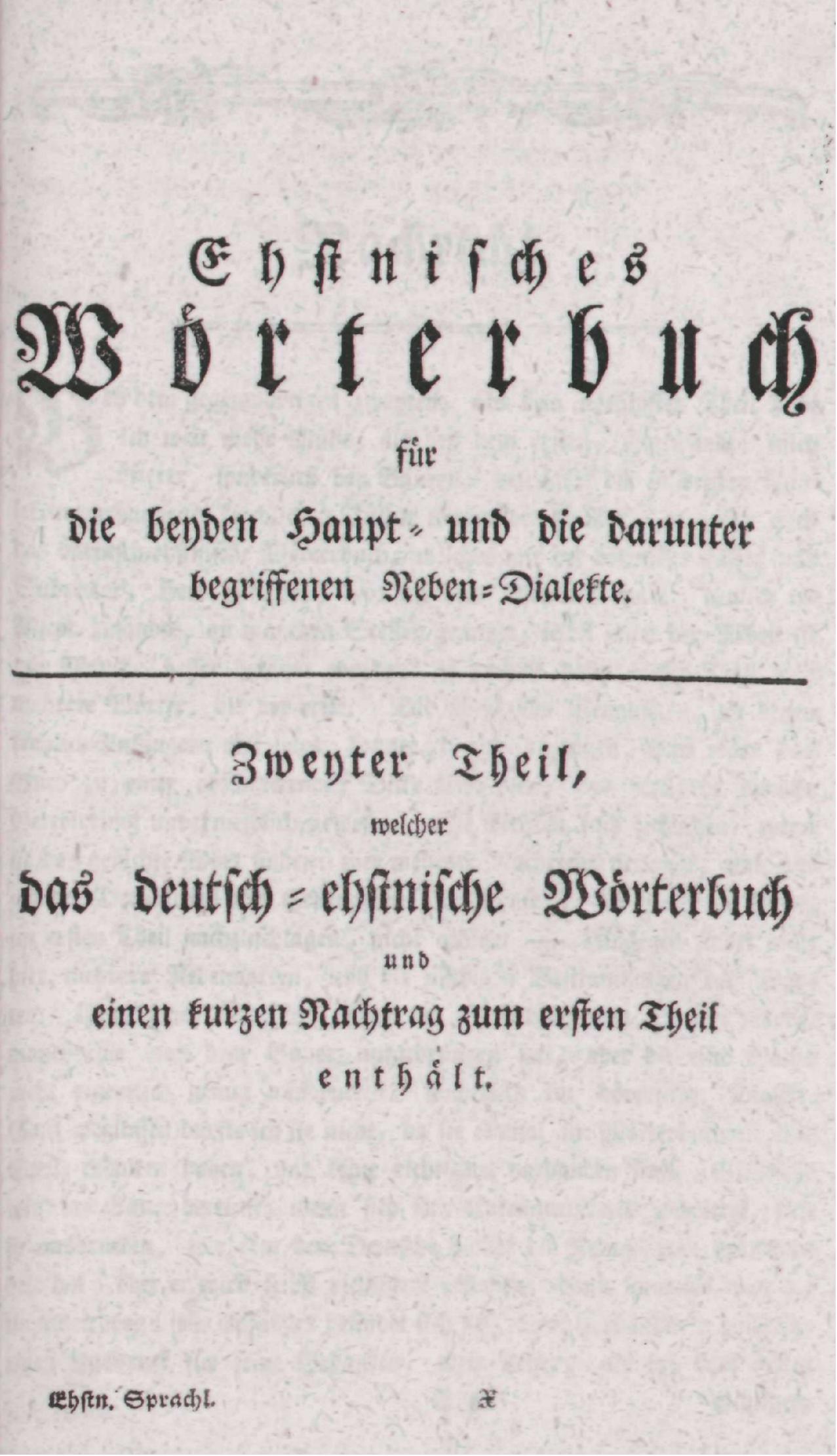 2. Ehstnisches Wörterbuch für die beyden Haupt- und in darunter begriffenen Neben-Dialekte.