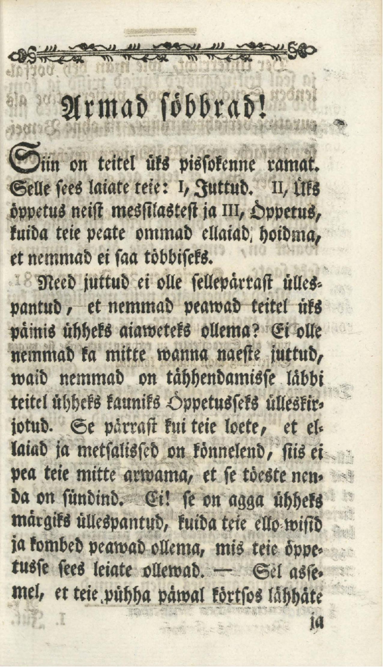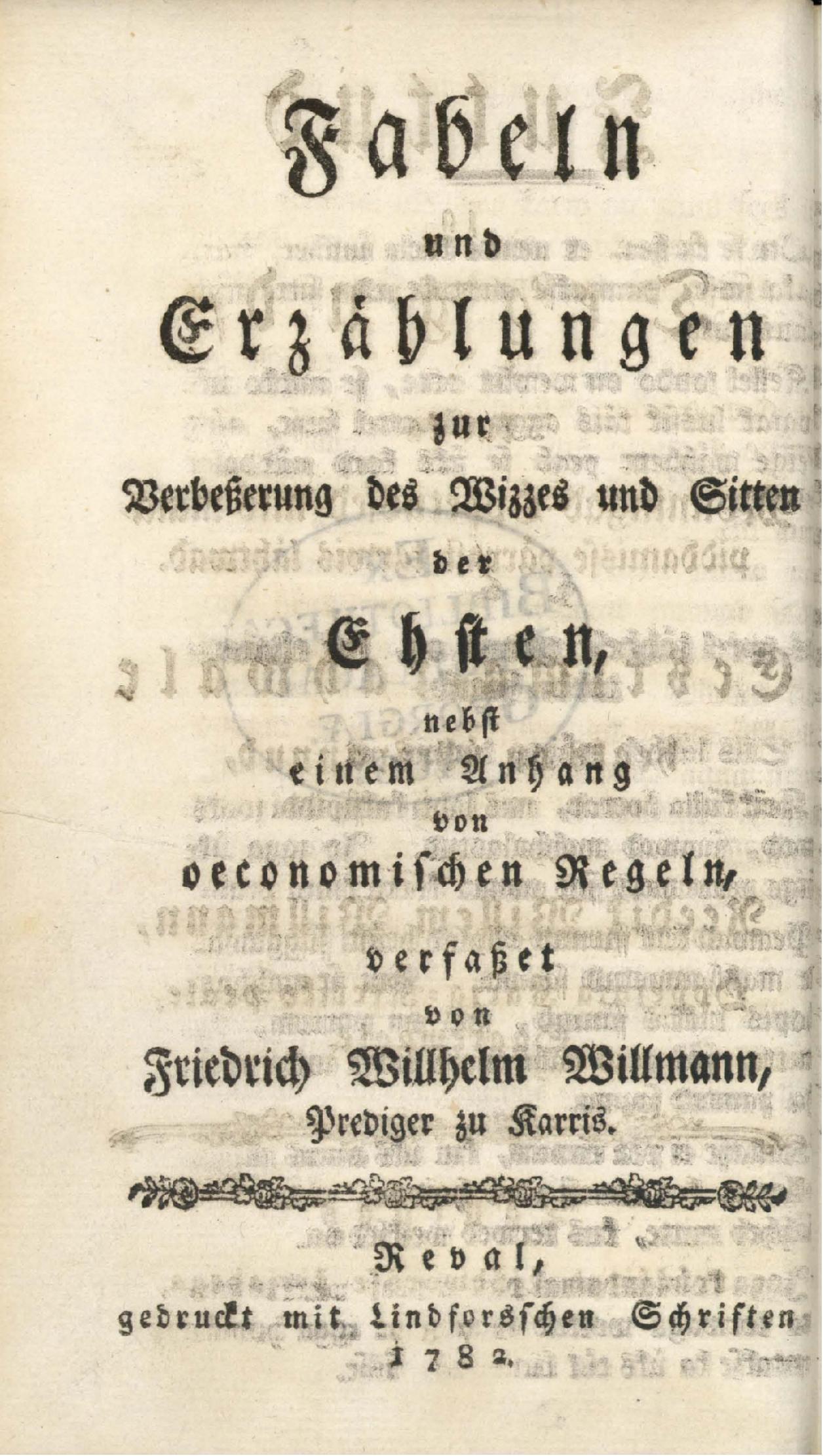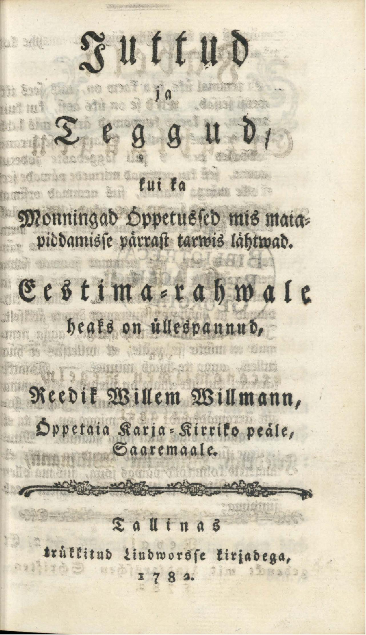 Ilmunud: Tallinn, s.n., 1782 (Tallinn, Lindfors)