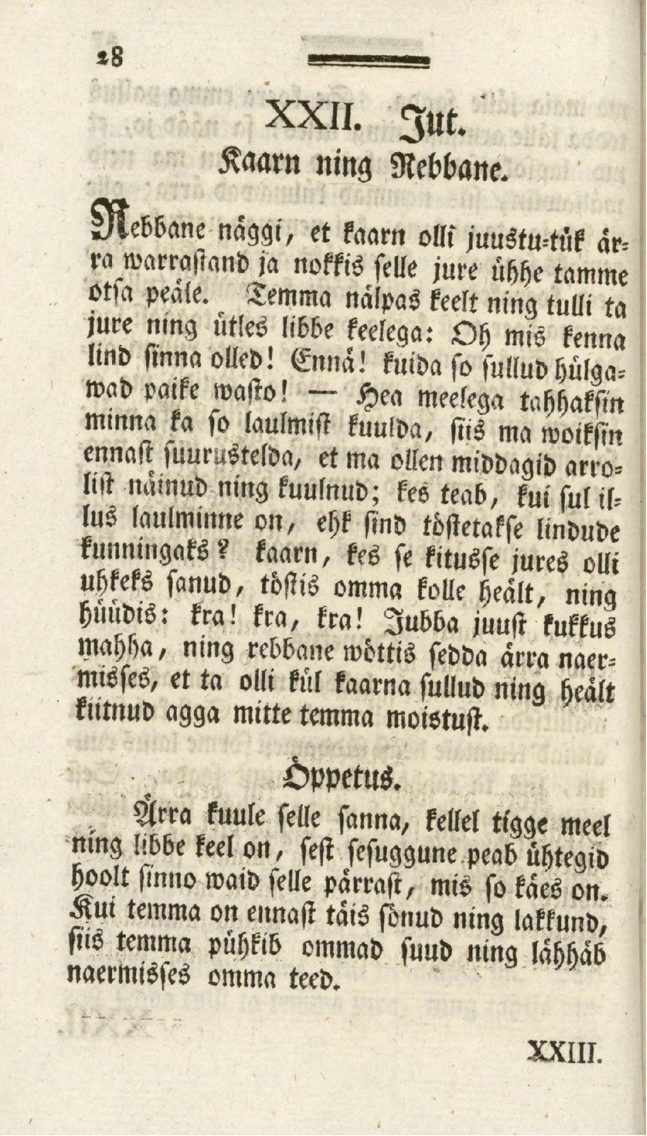 Esimene eestikeelne õpetlik juturaamat, Juttud ja teggud... - 1782