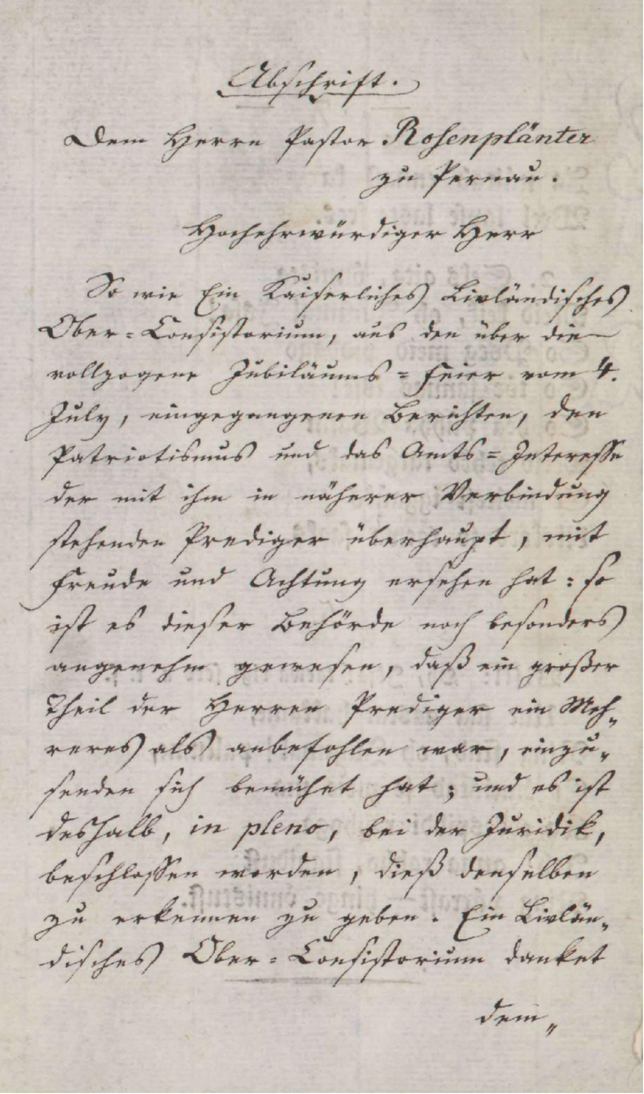 Laulud, mis neljandamal heina-ku päwal, (mil päwal, saa aasta eest, meie Liiwlandi-ma Wenne-wallitsusse alla tulli), 1810. Perno ma-kirrikus laultakse