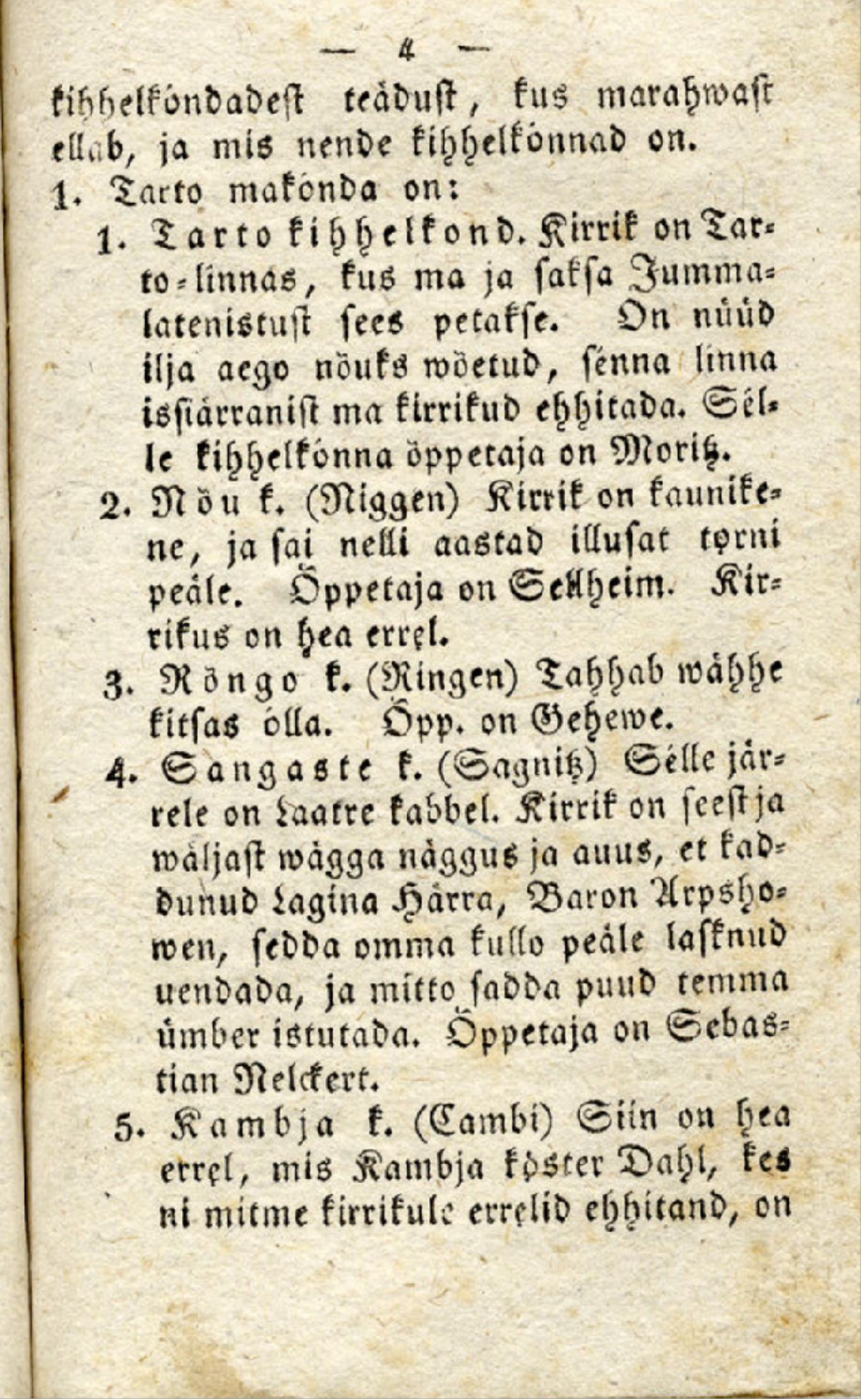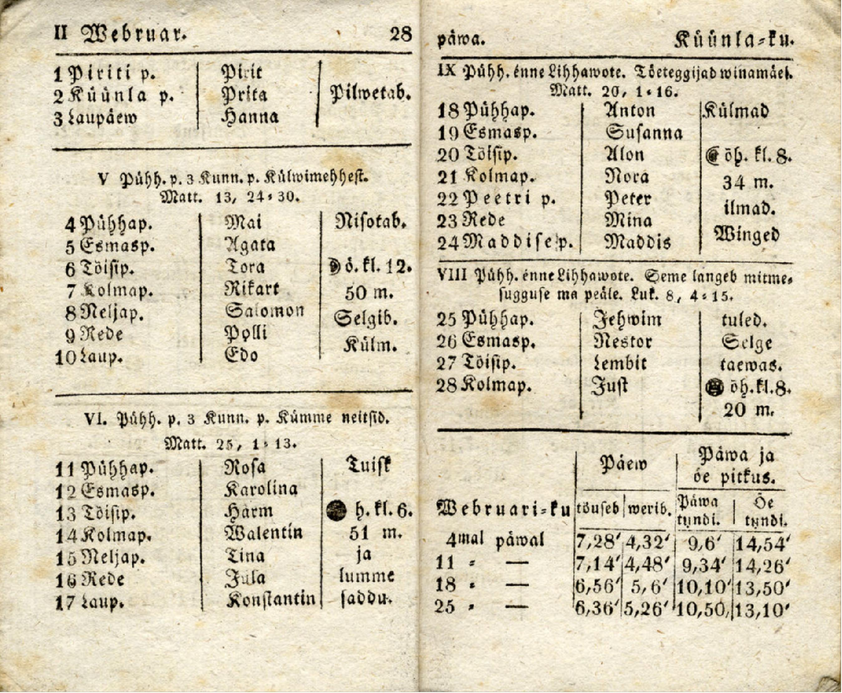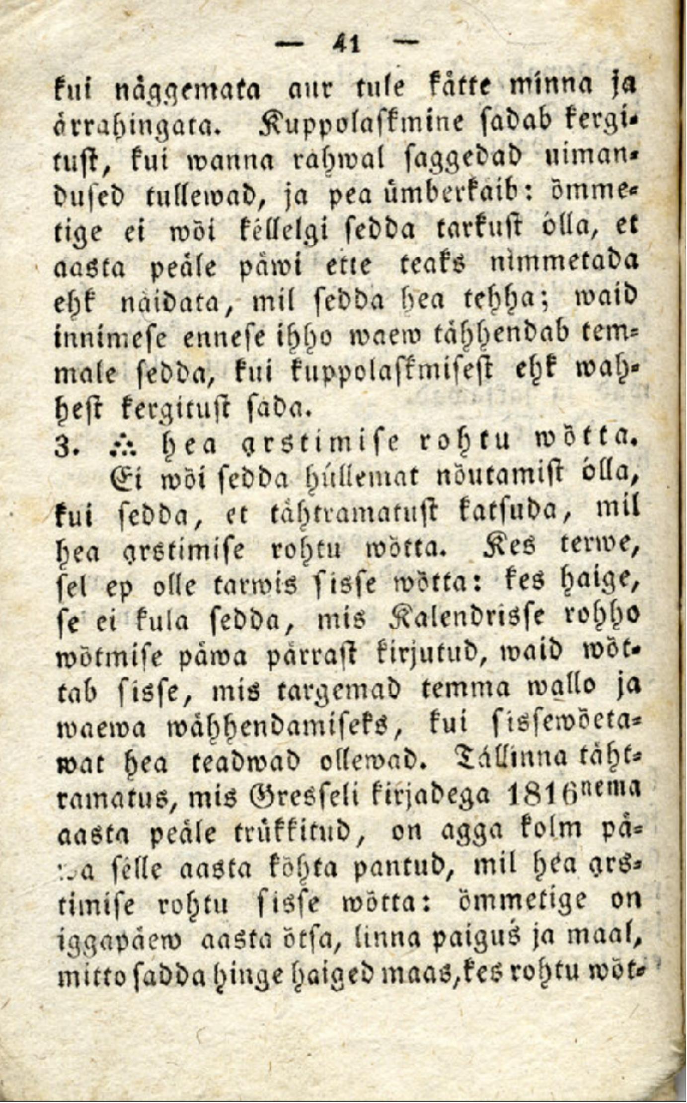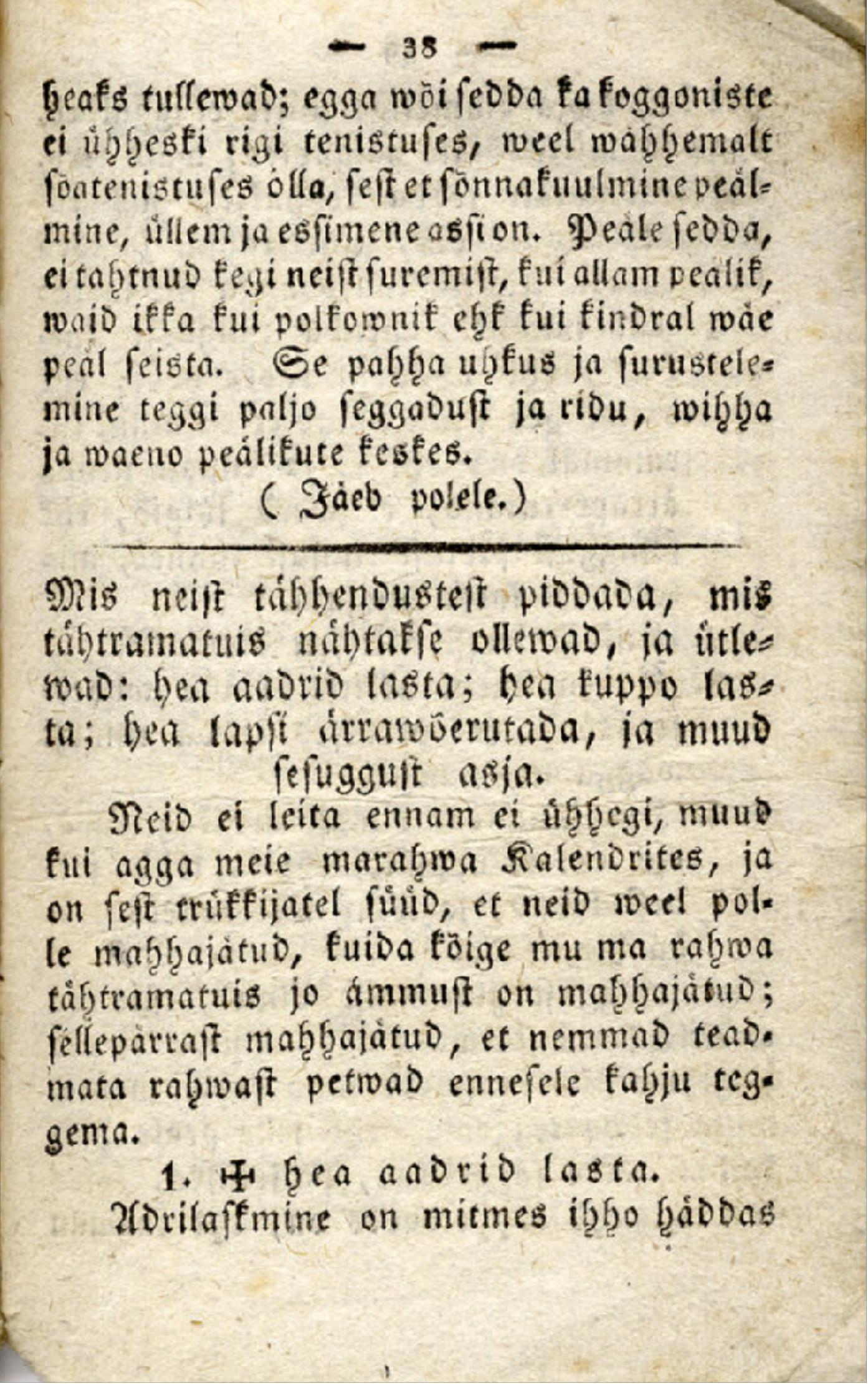 Neljanda eestikeelse kalendrisarja ( O. W. Masingu kalender) esimene kalender - 1822