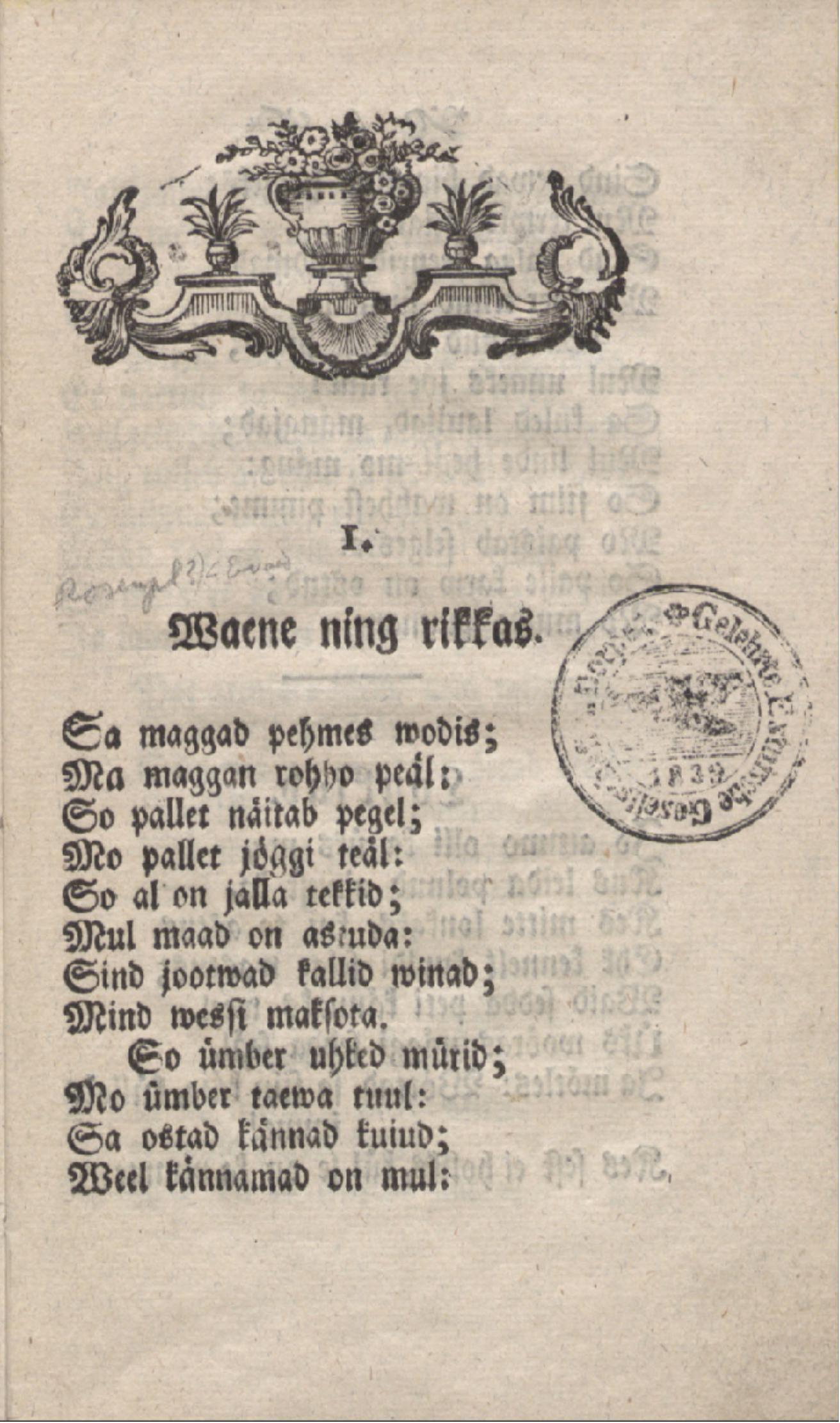 Esimene eestikeelne luuleantoloogia, mis koosneb eelkõige J. H. Rosenplänteri ajakirjas "Beiträge" ilmunud luuletustest ja epigrammidest.