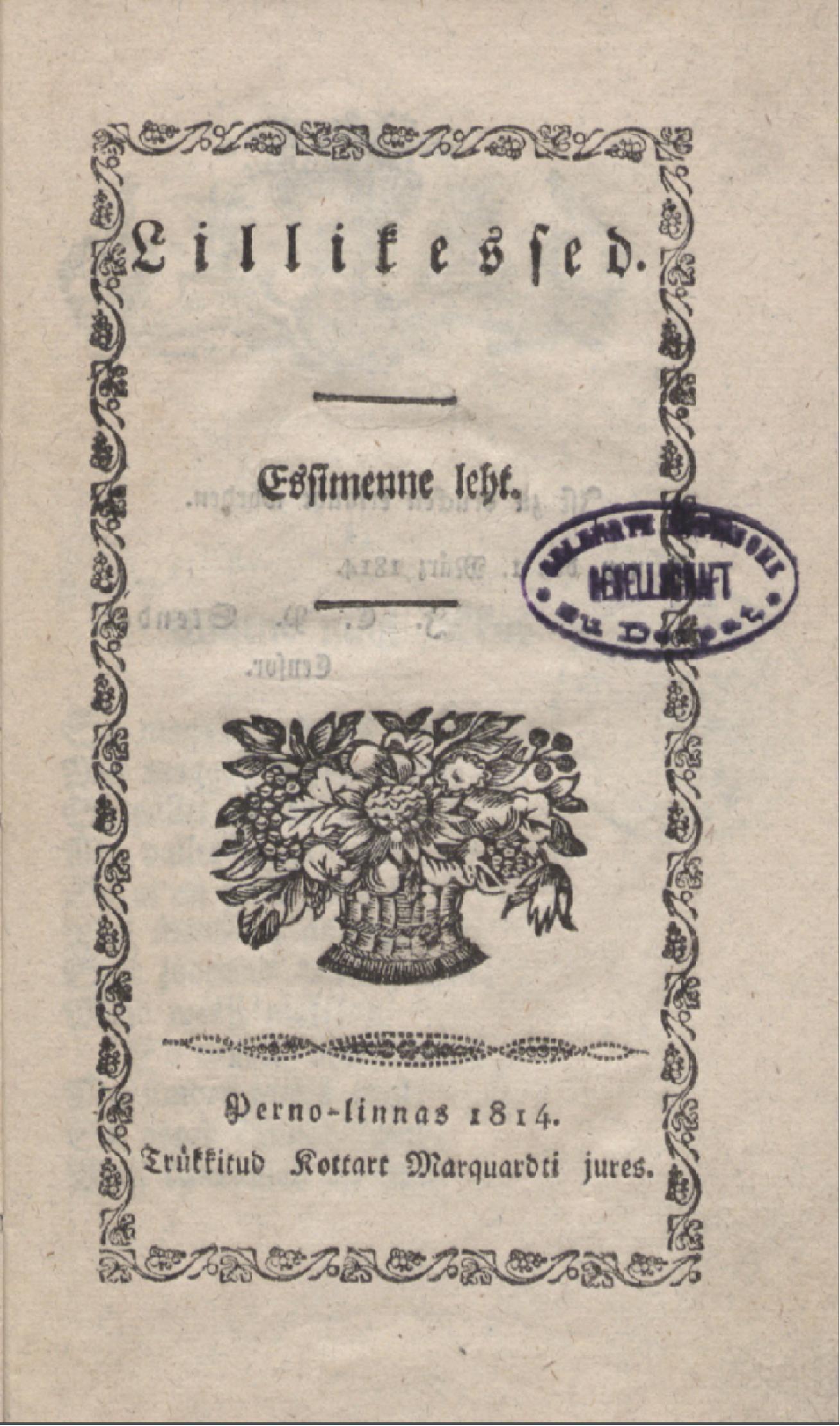 Ilmunud: Pärnu, 1814 (Pärnu, J. G. Marquardt)