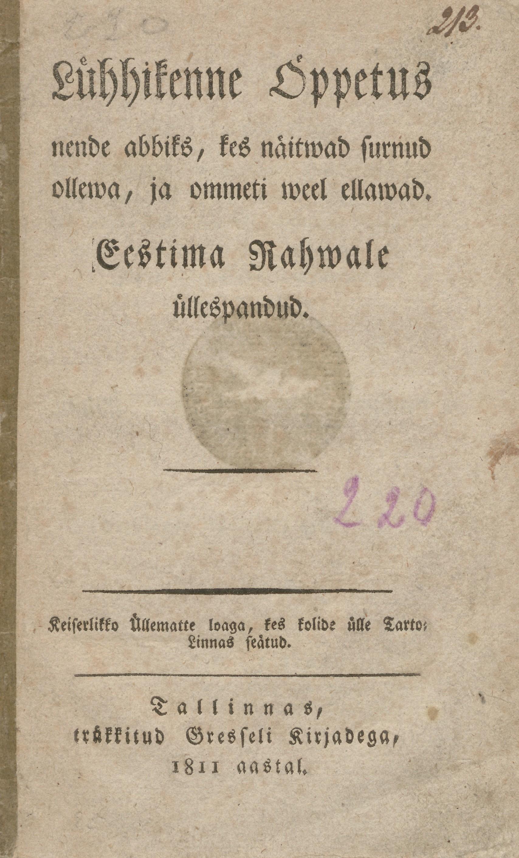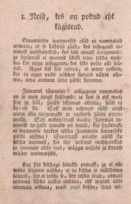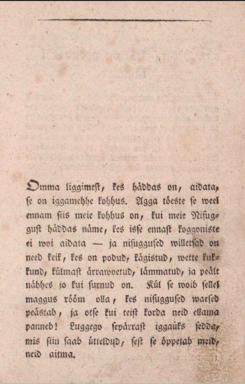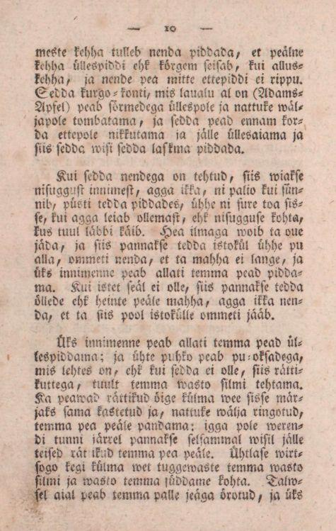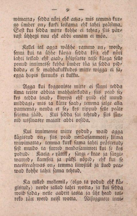 Neist, kes on ärrauppund. Üks innimenne, kes wette on langend, peab sama, ni ussinaste kui ial sünnib, wee seest wälja tombatud, ommeti ikka ni targaste, et tombades temmale mitte wigga ei tehta, ja peab katsutama tedda temma käe-wartest tombada, et pea üllespole tulleb. Ei pea tedda mitte pandama pea peäle seisma, ei ka mitte tedda weretama, ehk watide ülle aiama, sest et igga walli ligutaminne temmale pahha woib tehha.