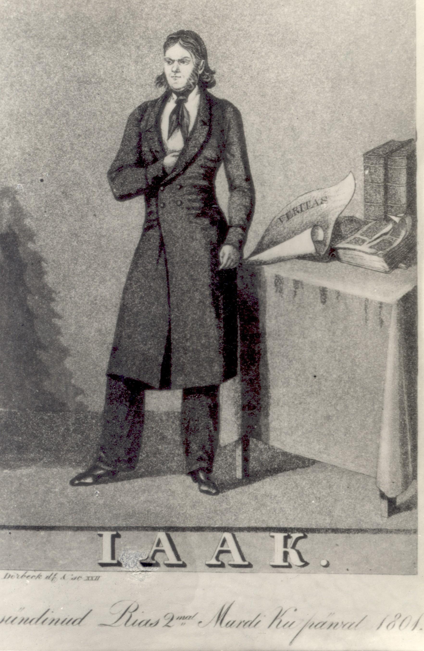 Portree alla on kirjutatud eestipärane nimi Iaak, mitte Christian Jacob Petersohn – nii rõhutas KJP taaskord oma eesti päritolu.