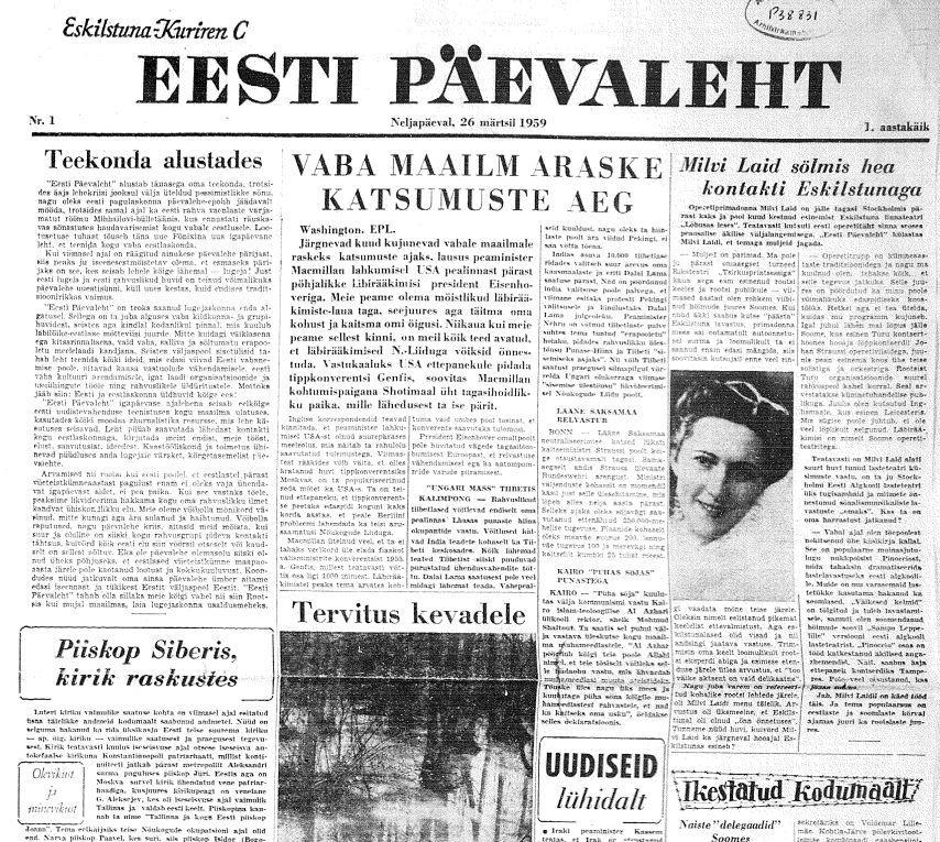 Stockholmis hakkab ilmuma eesti pagulaste ajaleht "Eesti Päevaleht".