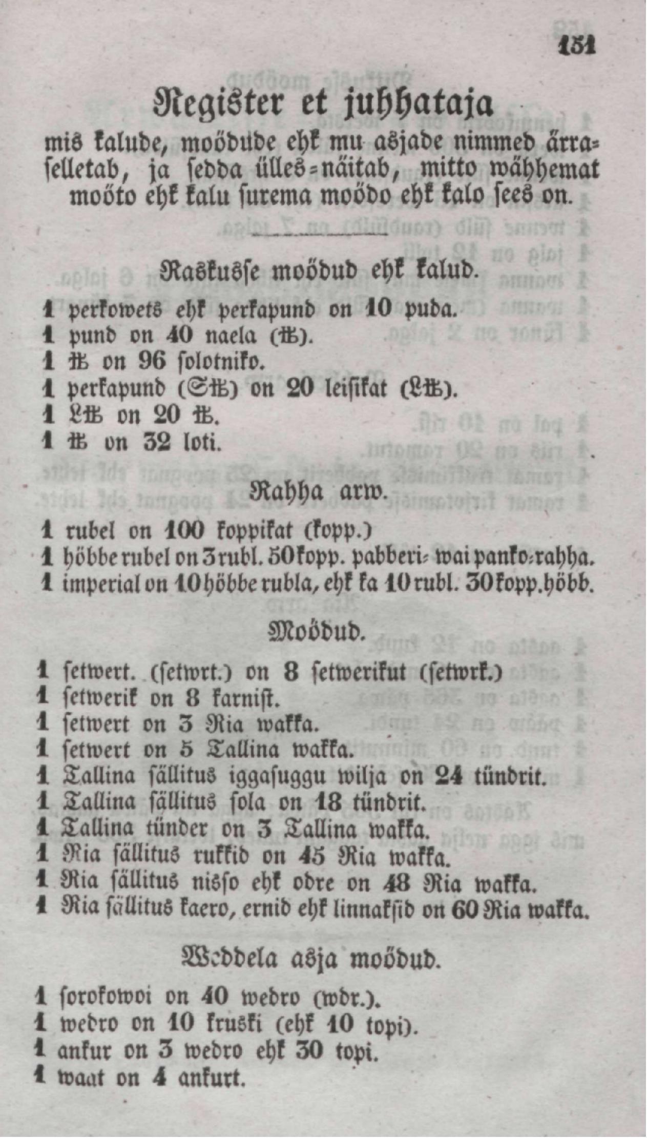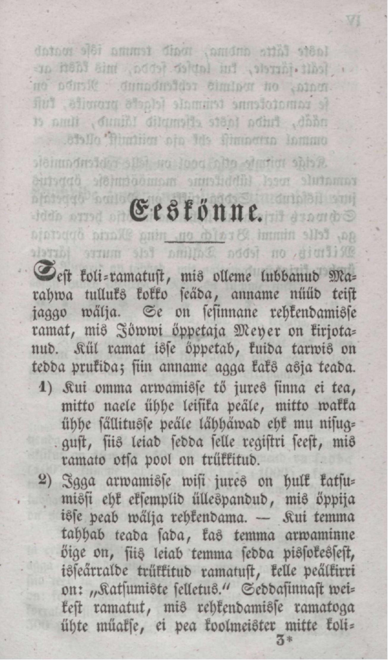 Esimene eestikeelse kooliraamatute sarja 2. jagu. Sisaldab ka: Arwamisse-ramato lissa : Wälja moödost ehk Ma-moötmissest ja Ma-arwust - 1852/1853