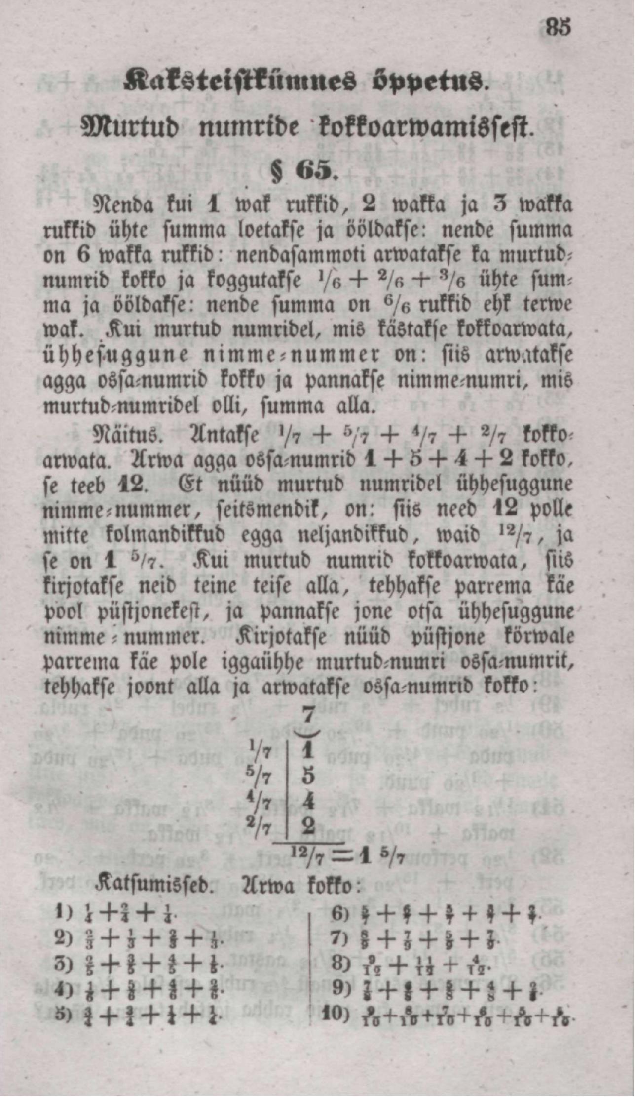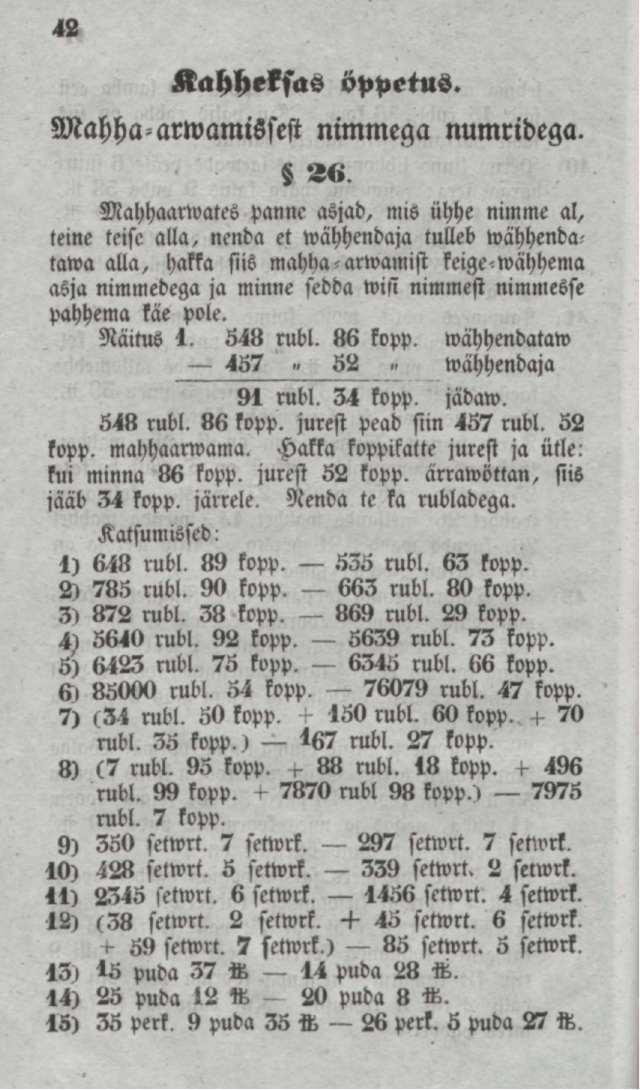 Katsumiste selletus ehk ärra-arwatud numrid, mis arwamisse ramato eksemplid peawad rehkendamisse läbbi wälja andma