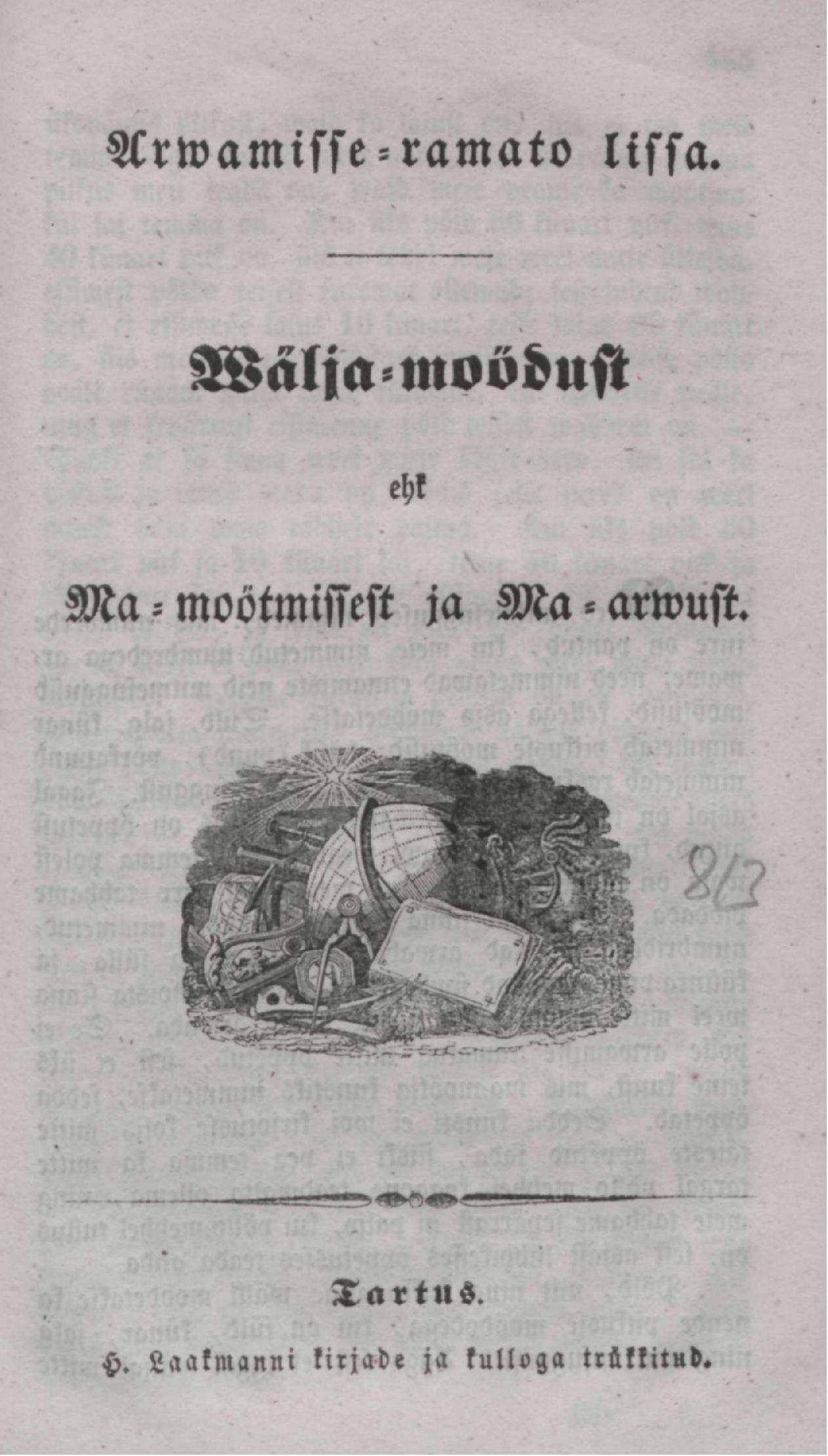Ilmunud: Tartu, H. Laakmann, 1852-1853 (Tartu, H. Laakmann)