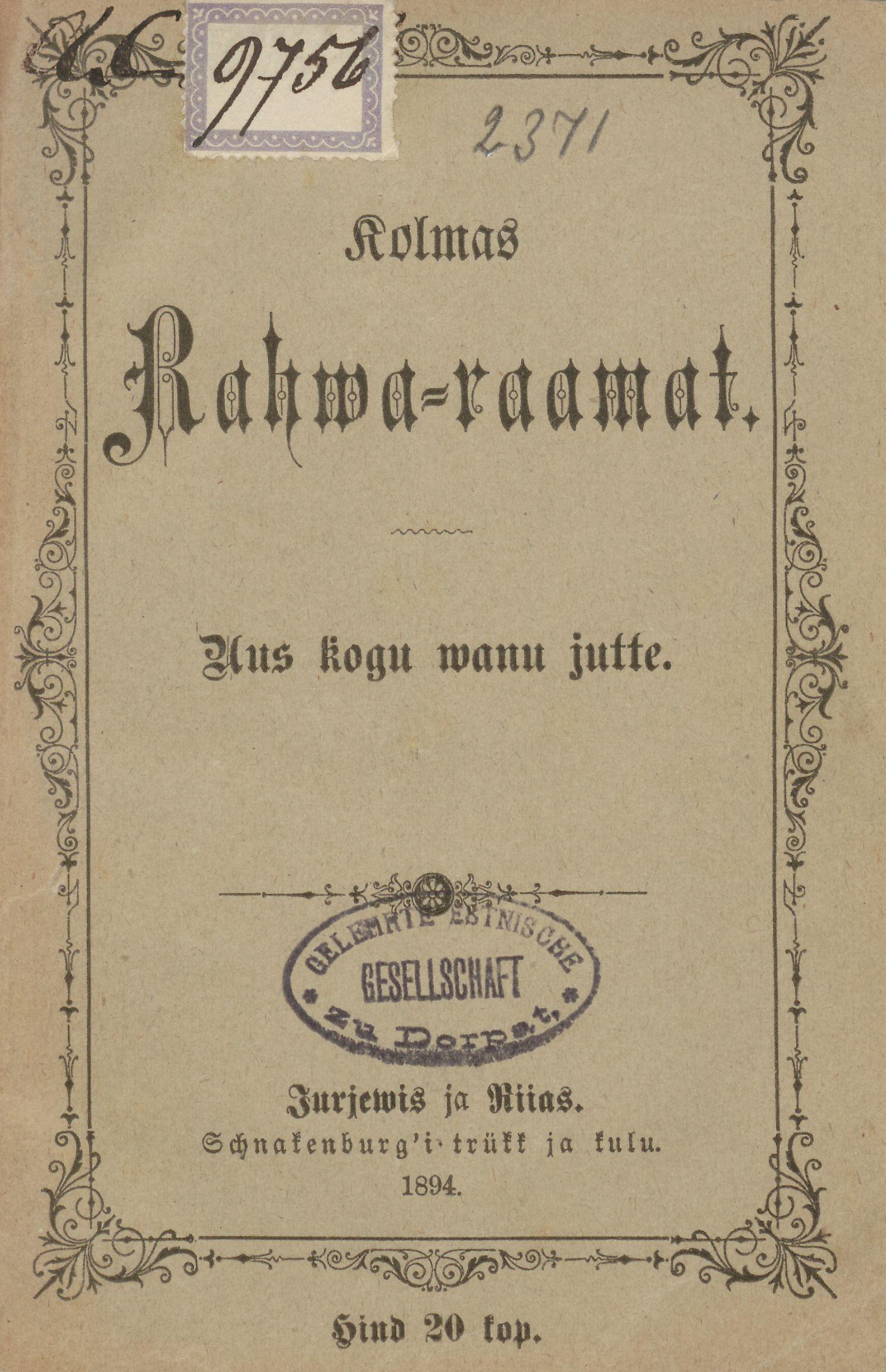 Rahvaraamatud toovad rahvajutud tagasi rahva sekka