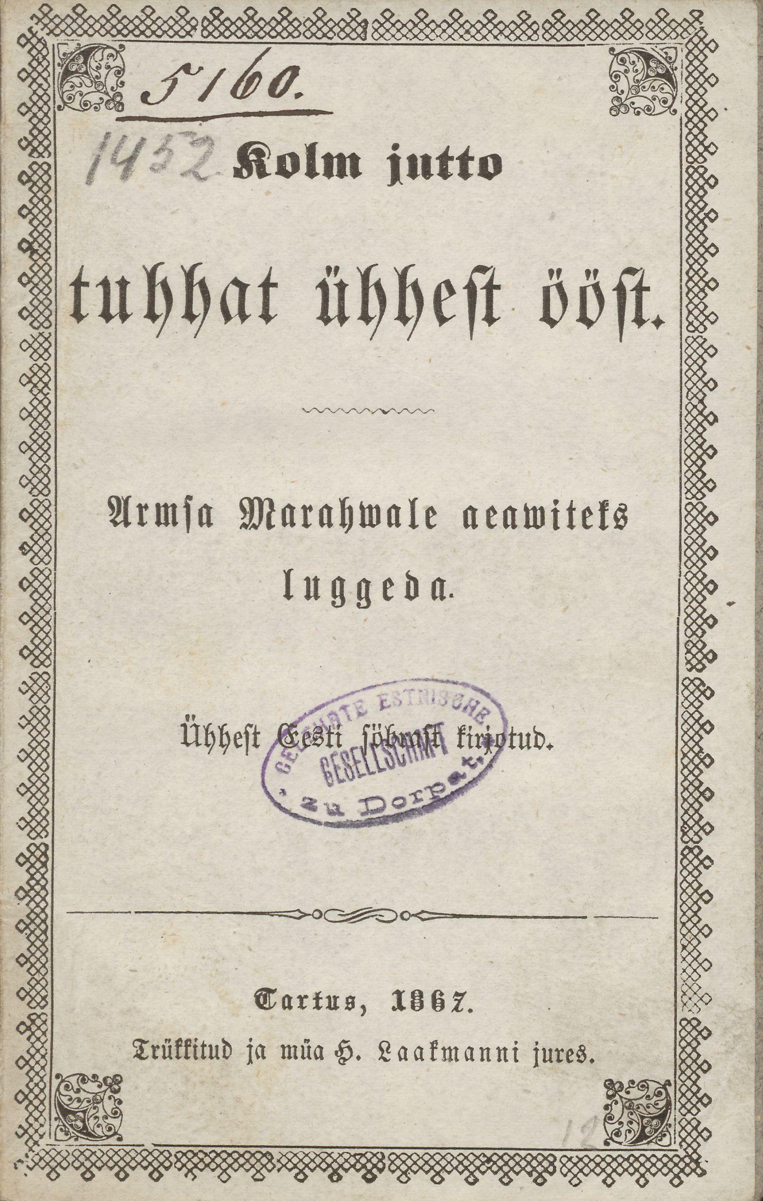 Kolm jutto tuhhat ühhest ööst. Armsa Marahwale aeawiteks luggeda.