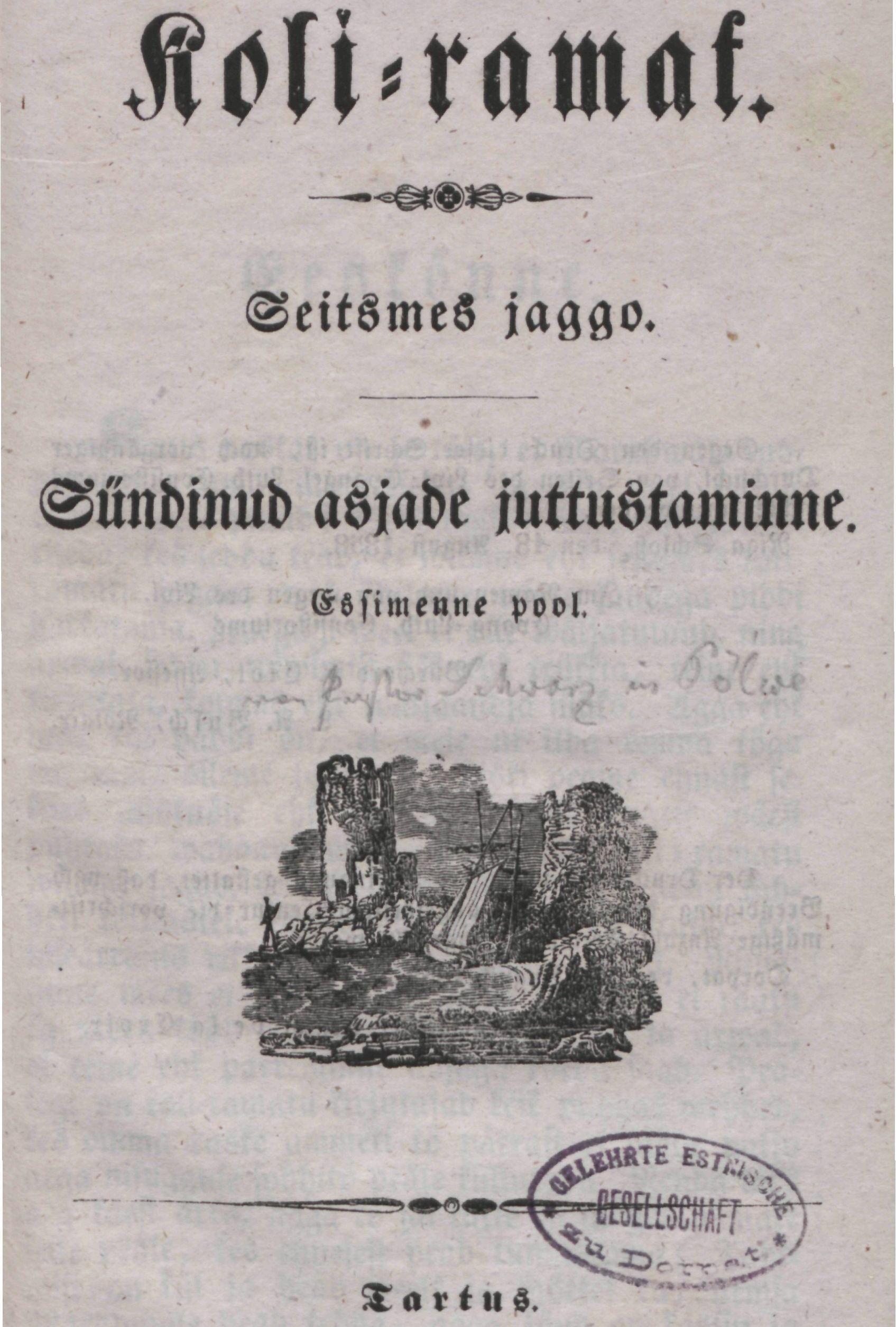 Autor: Schwartz, Johann Georg, 1793-1874.Ilmunud: Tartu, H. Laakmann, 1858 (Tartu, H. Laakmann) 🔎 - ESTER🔎 - Täistekst - (KIVIKE, EKM)🔎 - Täistekst - (Digar)