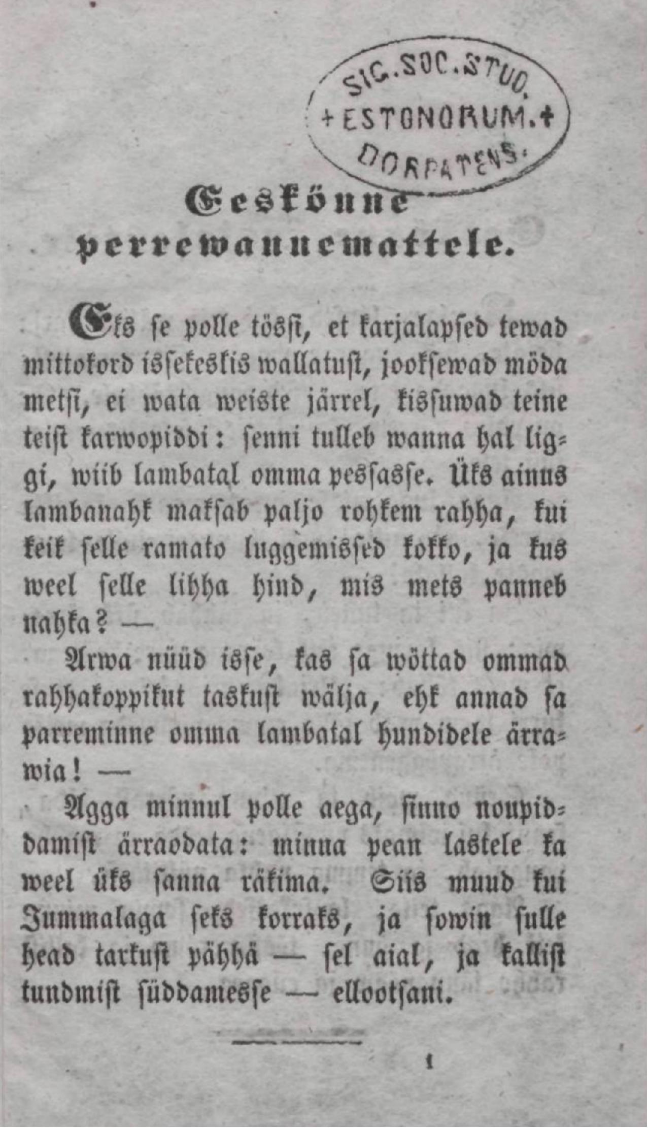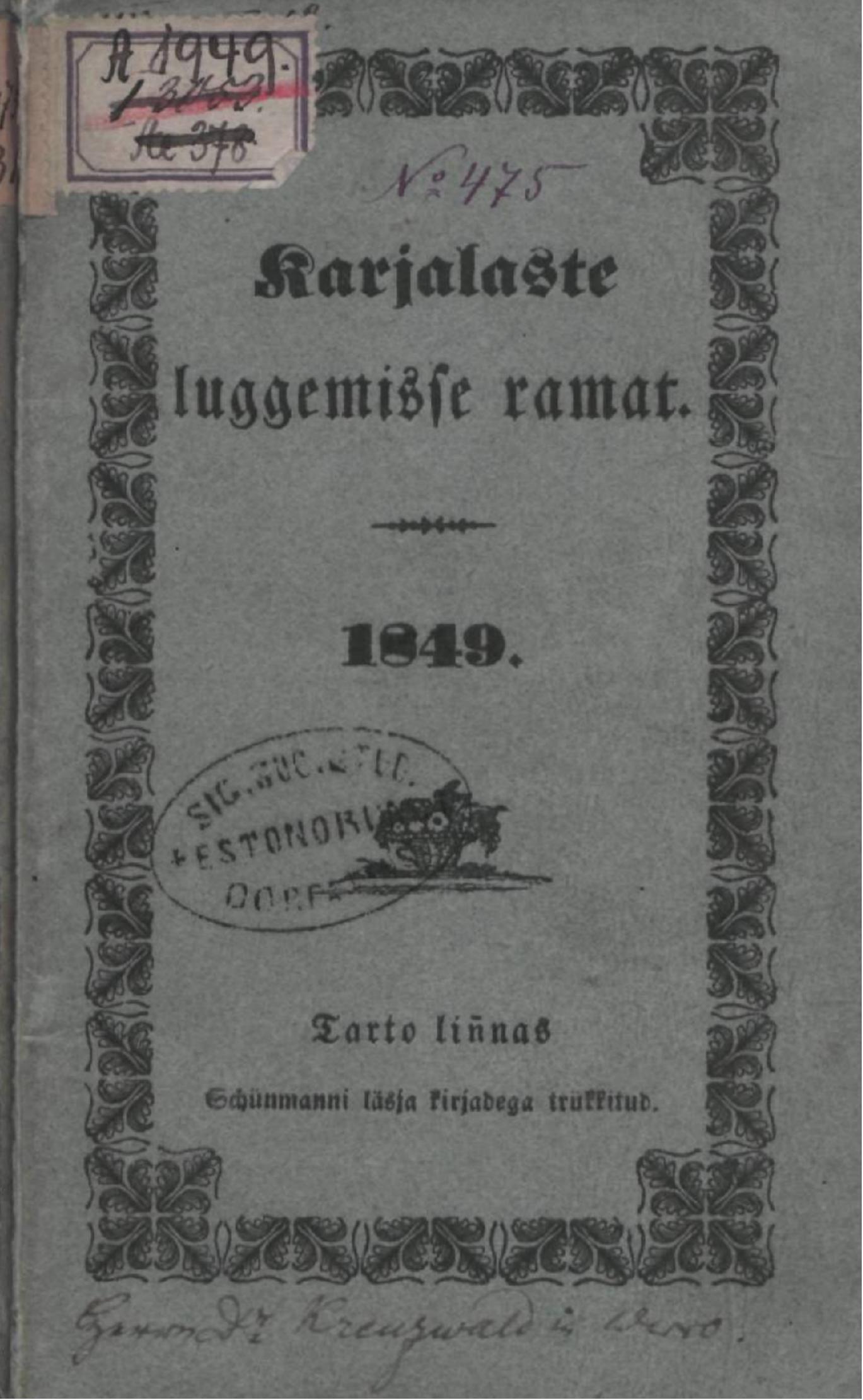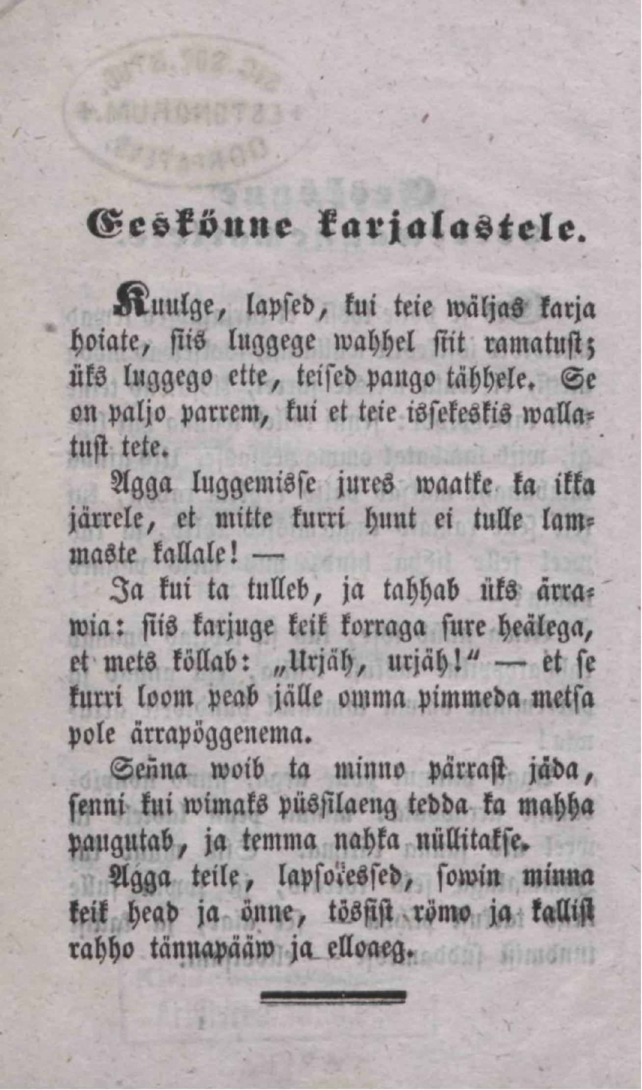 Esimene eestikeelne lastekirjanduse kogumik - Karjalaste luggemisse ramat 1849