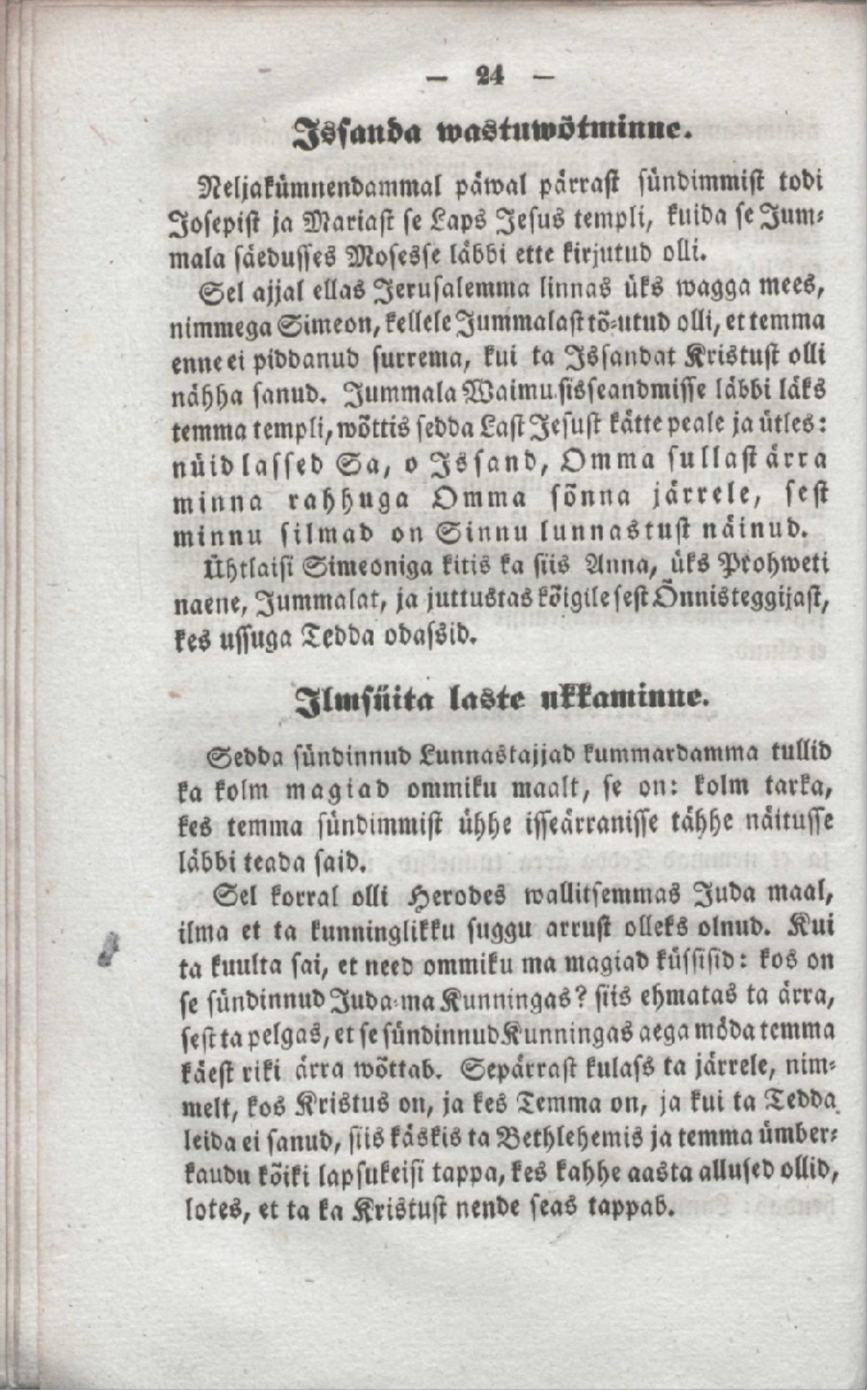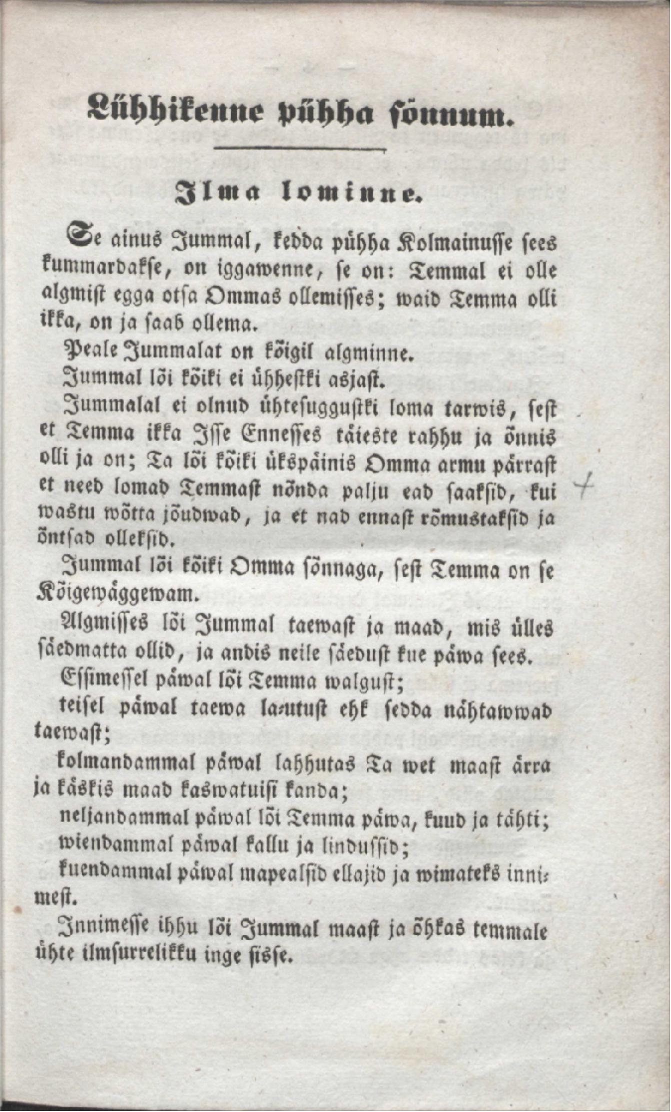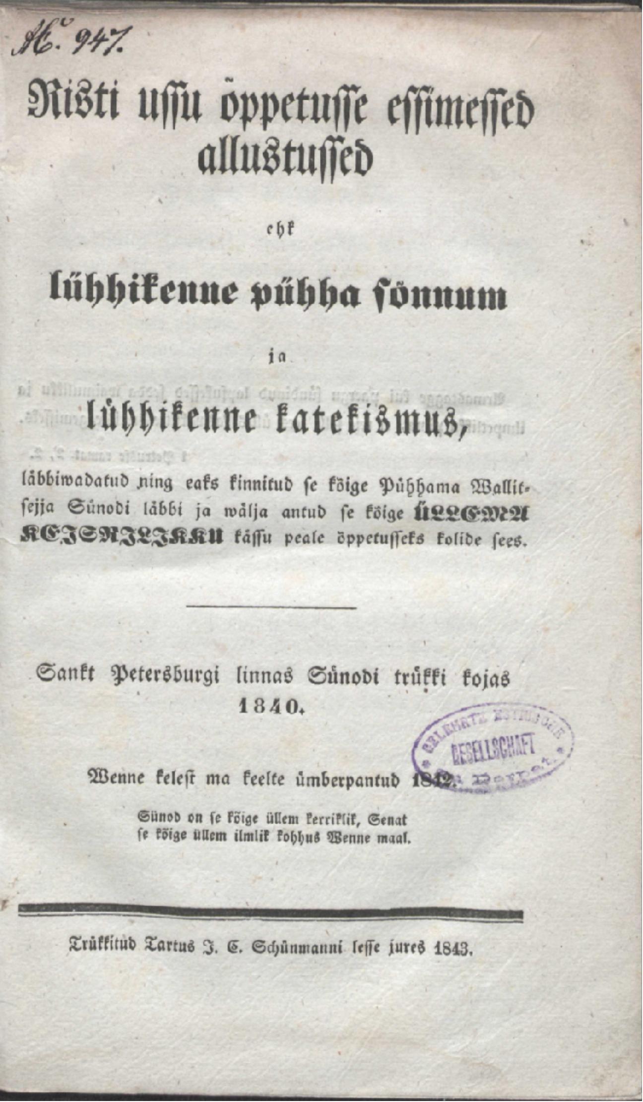 Ilmunud: Tartu, s.n., 1843 (Tartu, Schünmanni lesk)