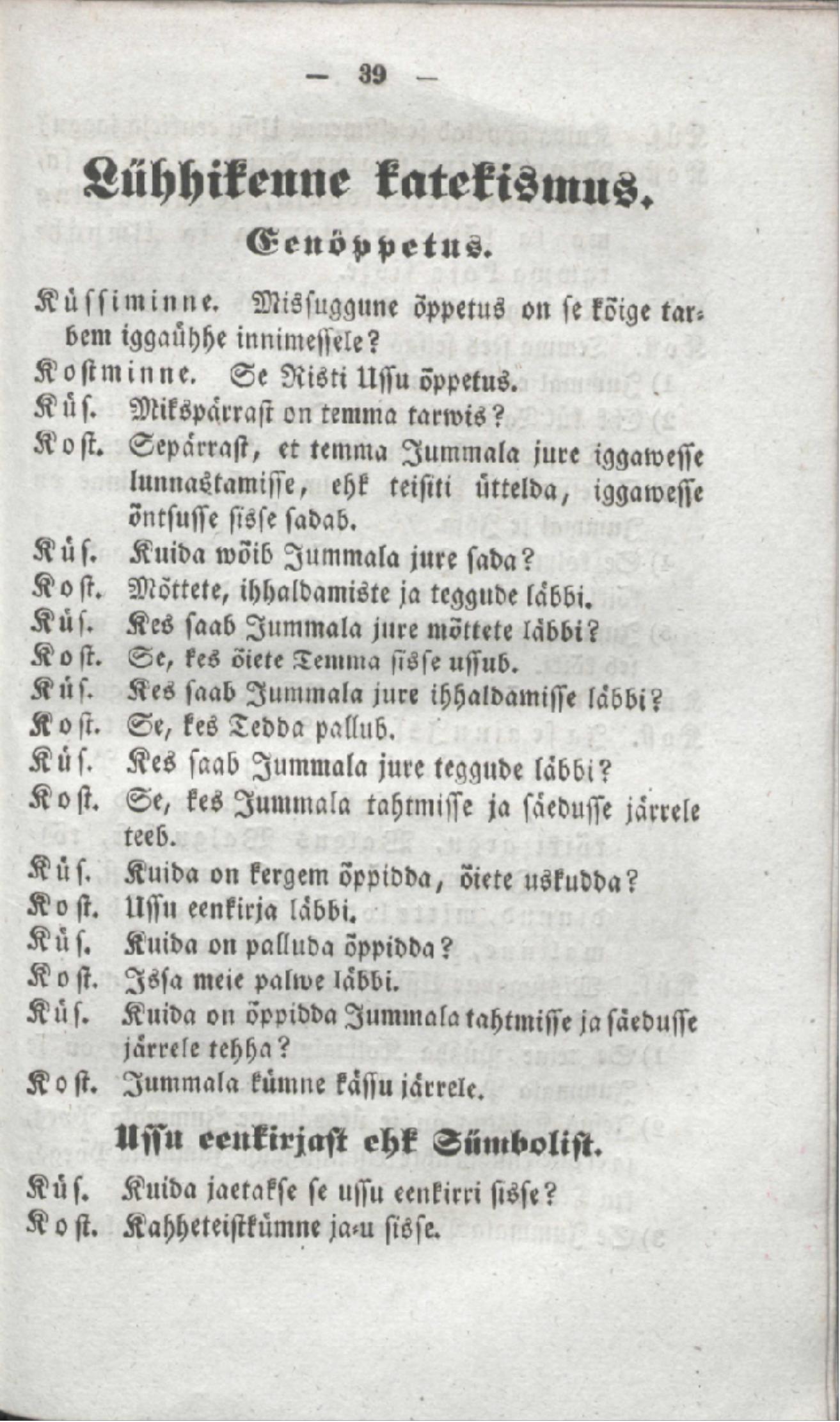 Esimene eestikeelne vene õigeusu õpik - Risti ussu õppetusse essimessed allustussed... - 1843