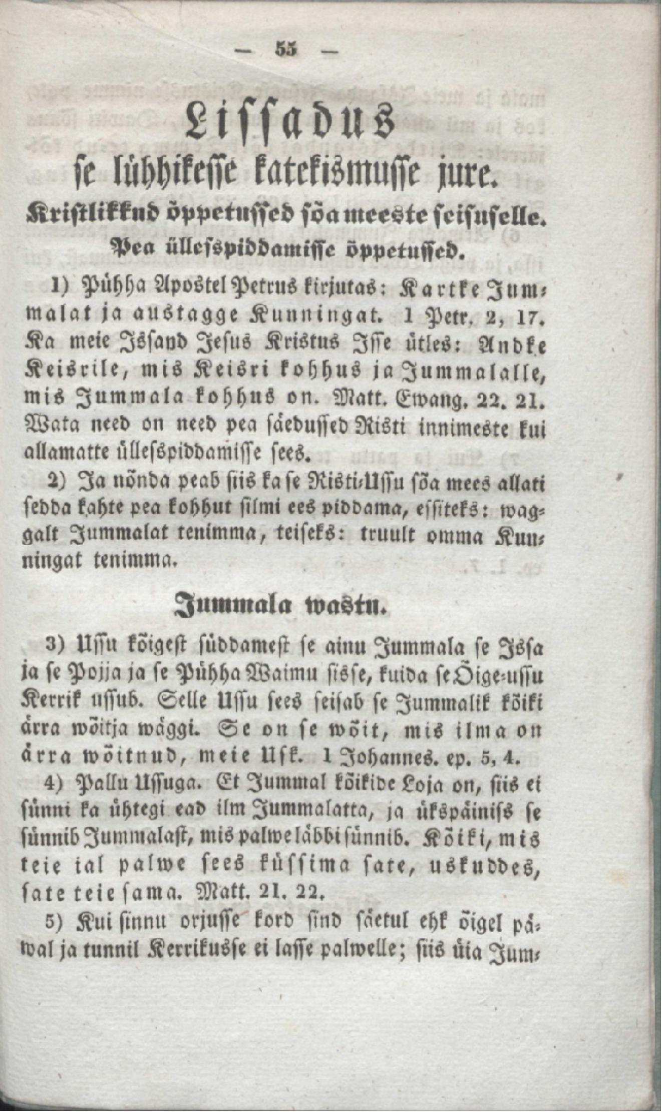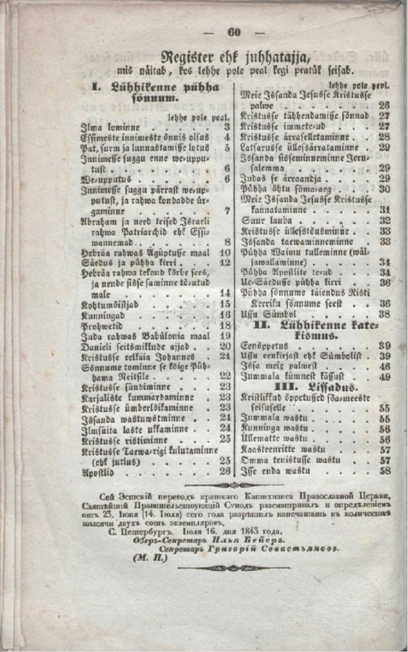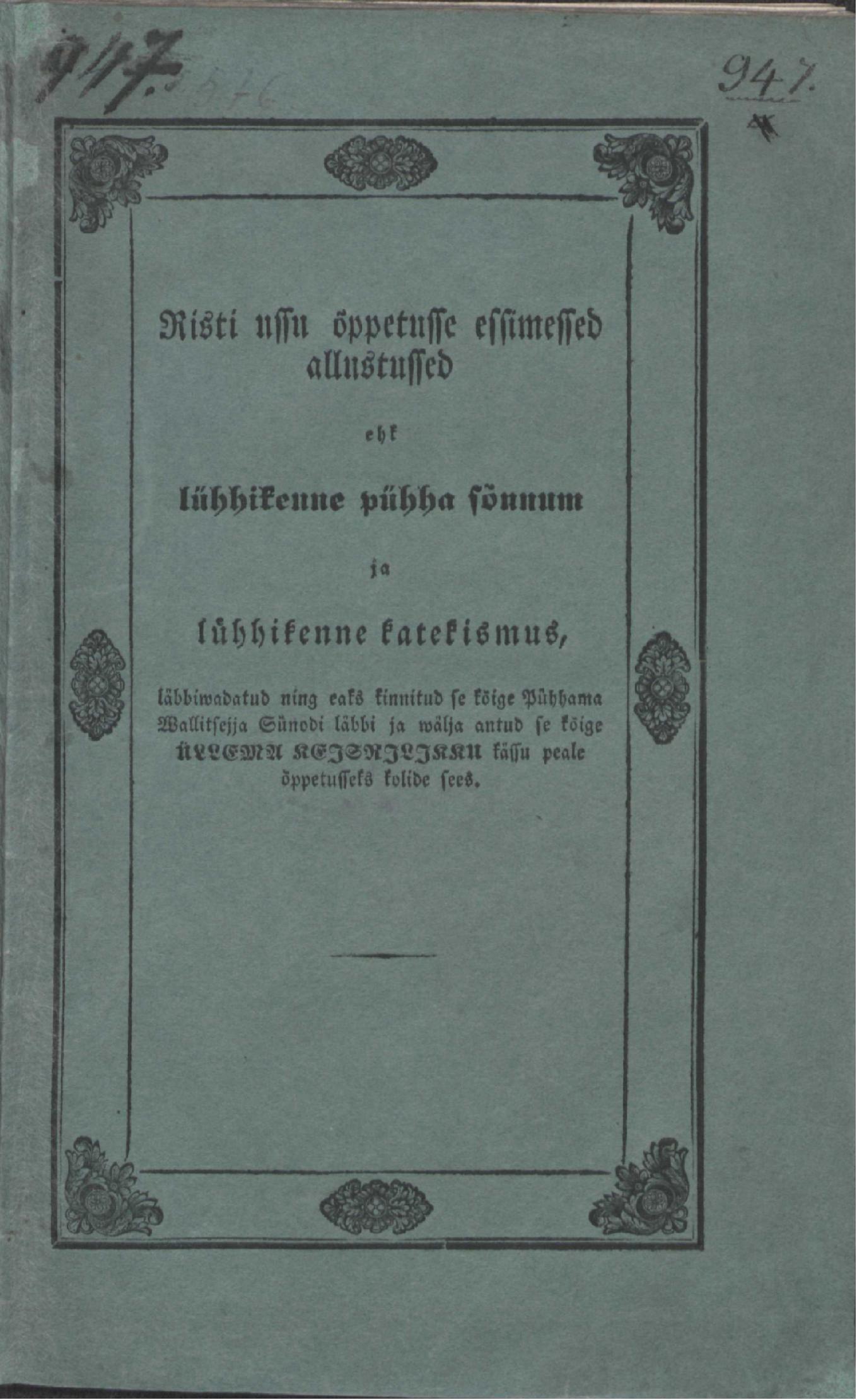 Risti ussu õppetusse essimessed allustussed ehk lühhikenne pühha sõnnum ja lühhikenne katekismus, läbbiwadatud ning eaks kinnitud se kõige Pühhama Wallitsejja Sünodi läbbi ja wälja antud se kõige Üllema Keisrilikku kässu peale õppetusseks kolide sees
