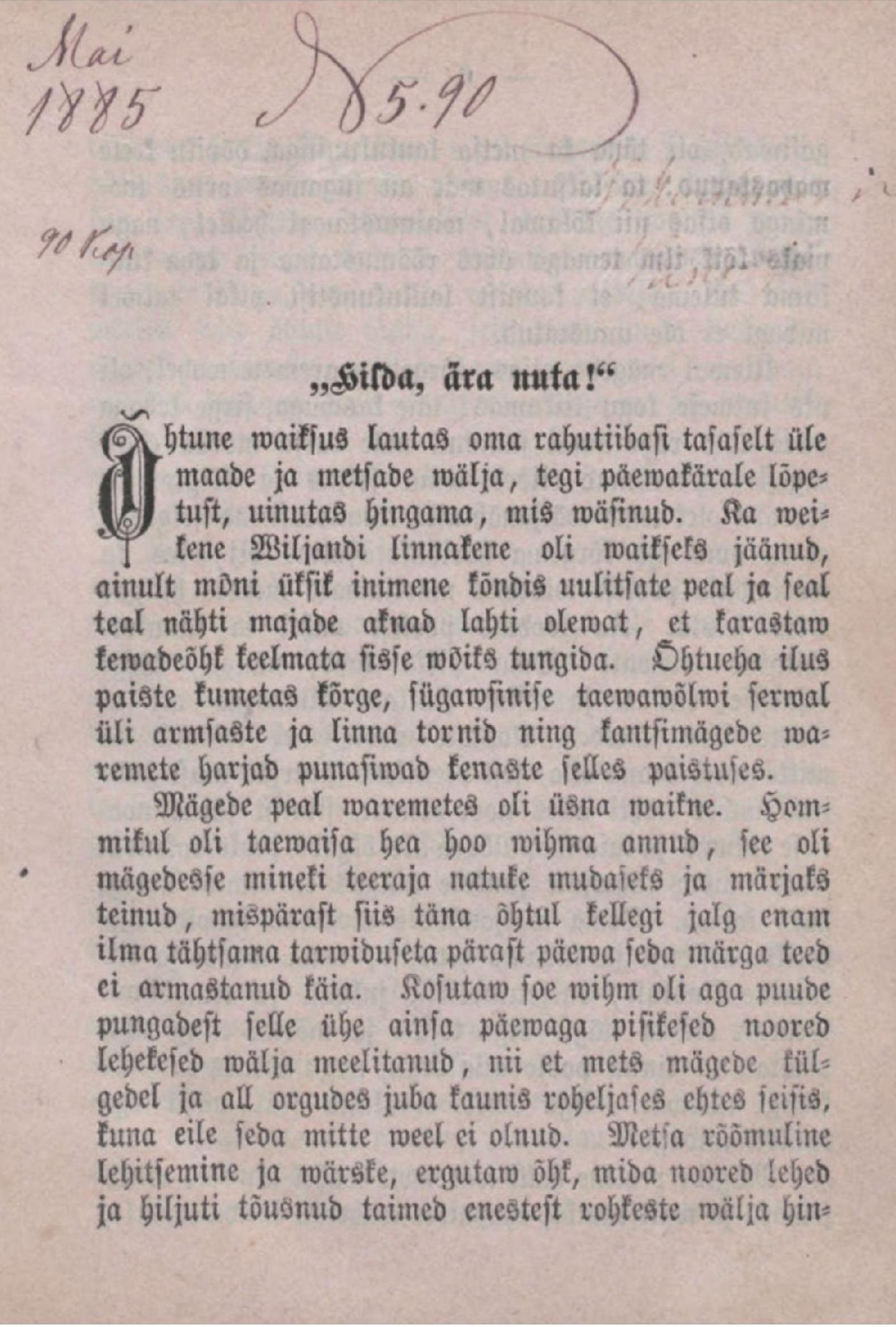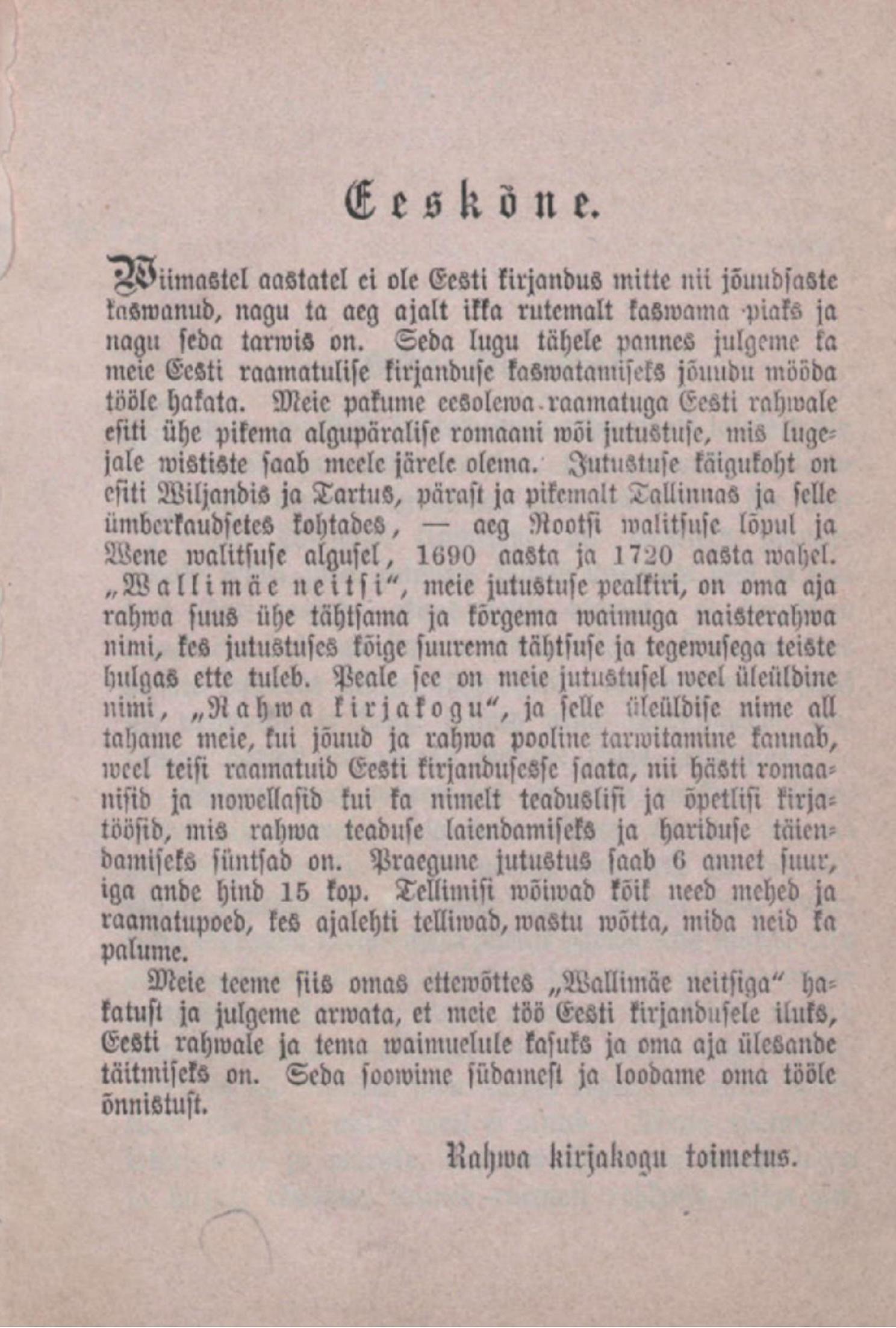 Esimene romaan eesti kirjanduses - Wallimäe neitsi 1885