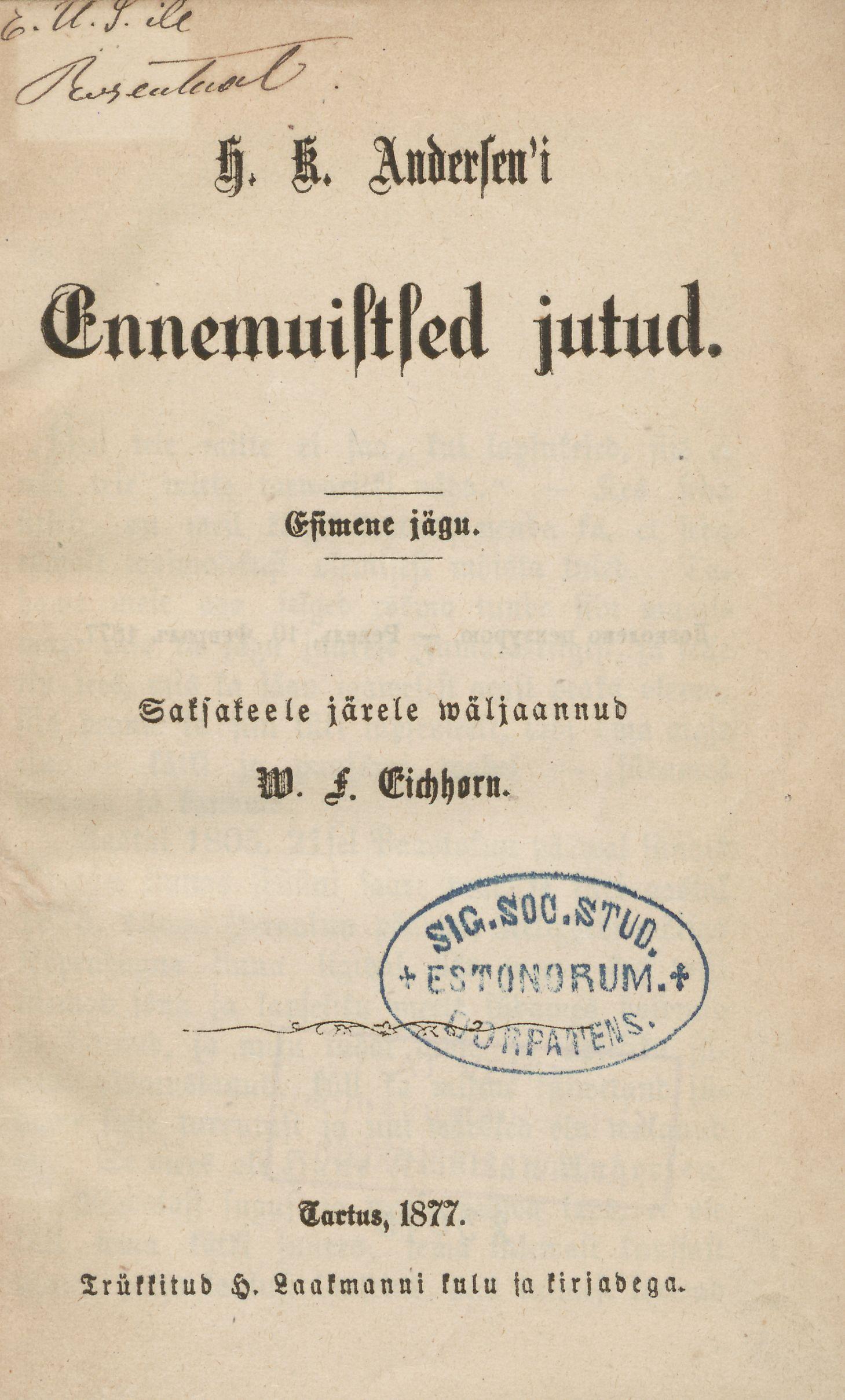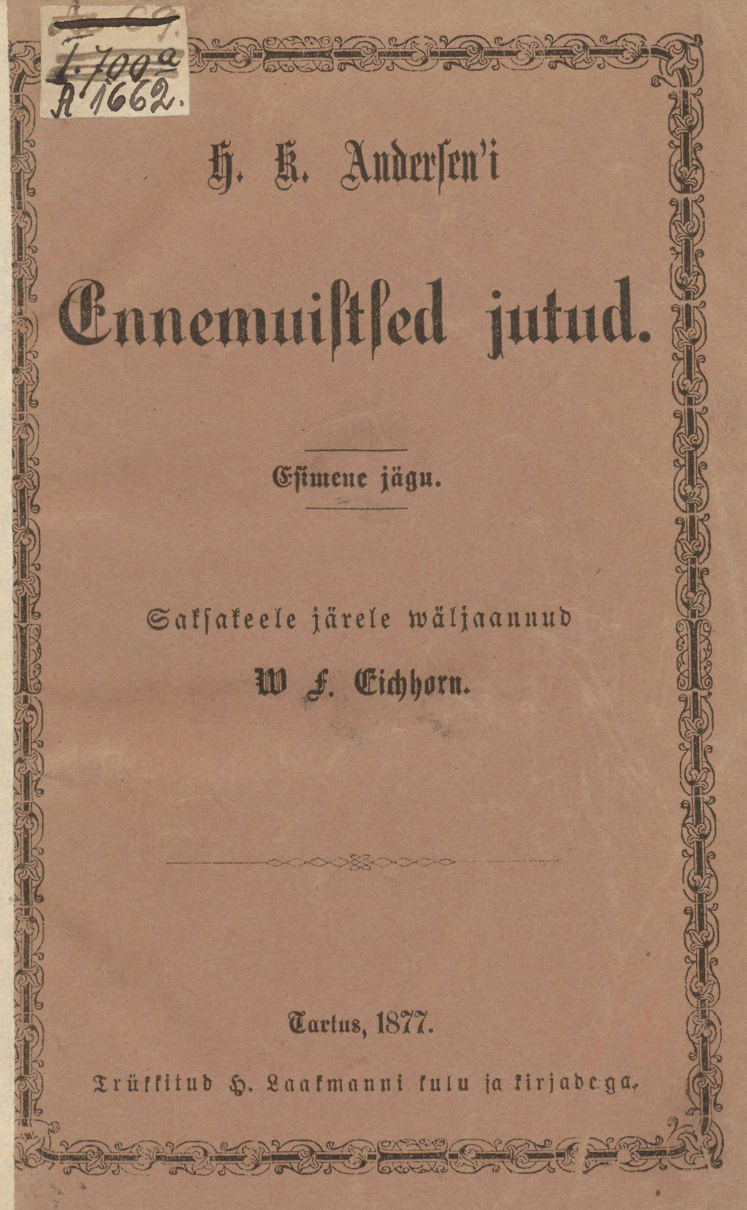 Autor: Hans Christian Andersen, tõlkinud Wilhelm Friedrich Eichhorn (1827-1896)