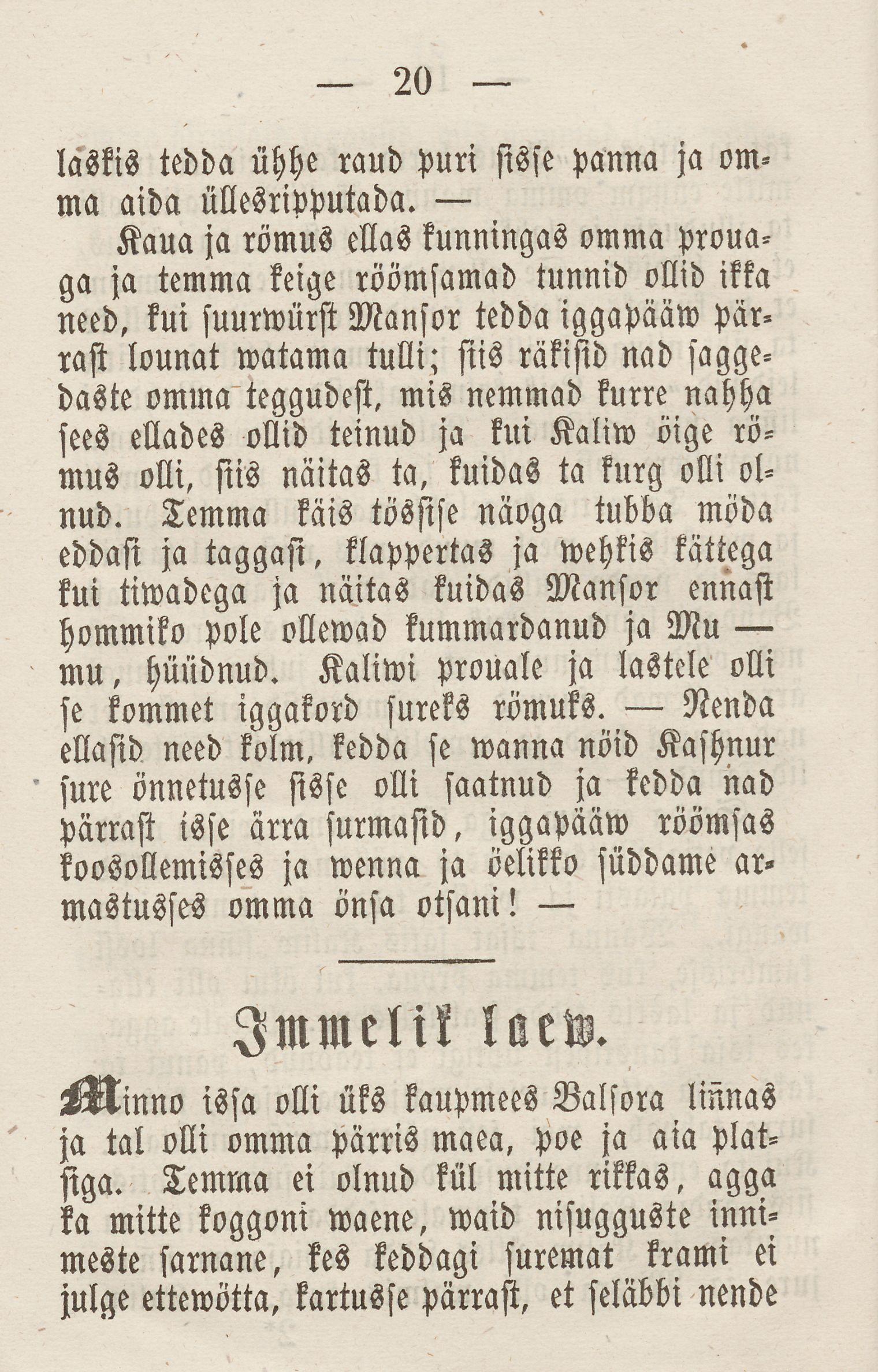 Raamat sisaldab kahte Saksa kirjaniku Wilhelm Hauffi (1802-1827) kunstmuinasjuttu: „Üks jut Kaliwist, kes kurreks sai nõiutud“ ning „Immelik laev“. Juttude tõlkija Ernst Muhel oli kooliõpetaja.