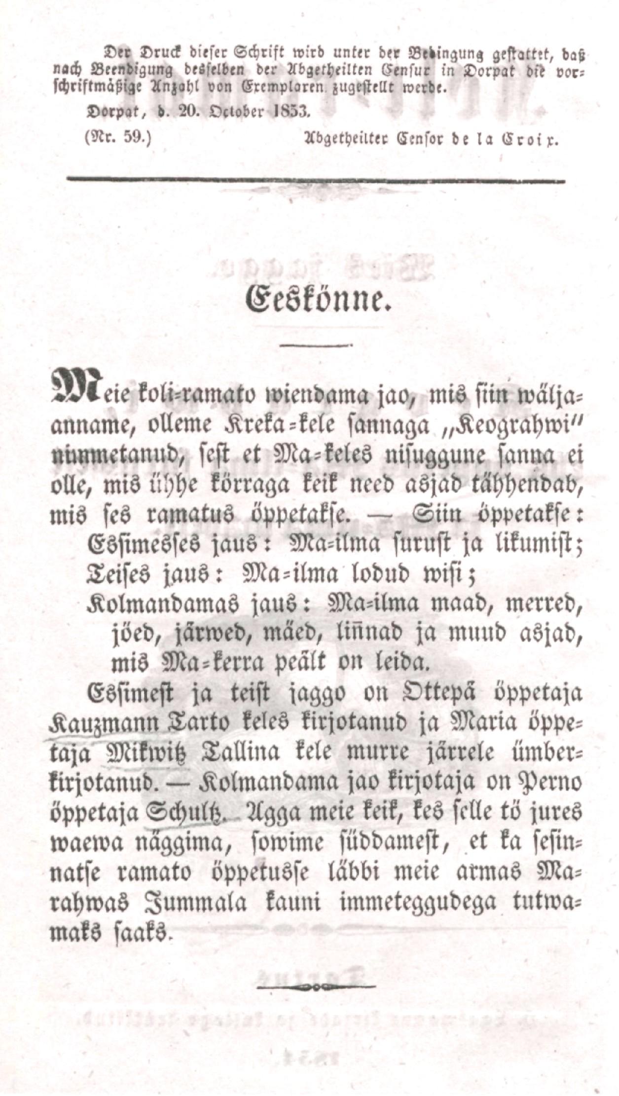 Ilmunud: Tartu, H. Laakmann, 1854 (Tartu, H. Laakmann)
