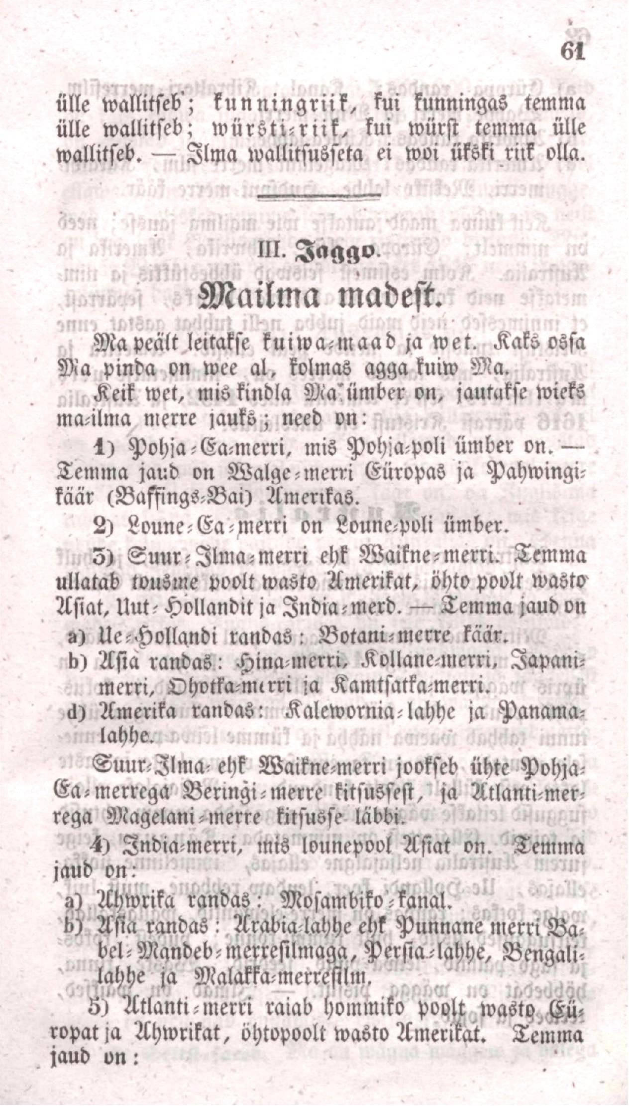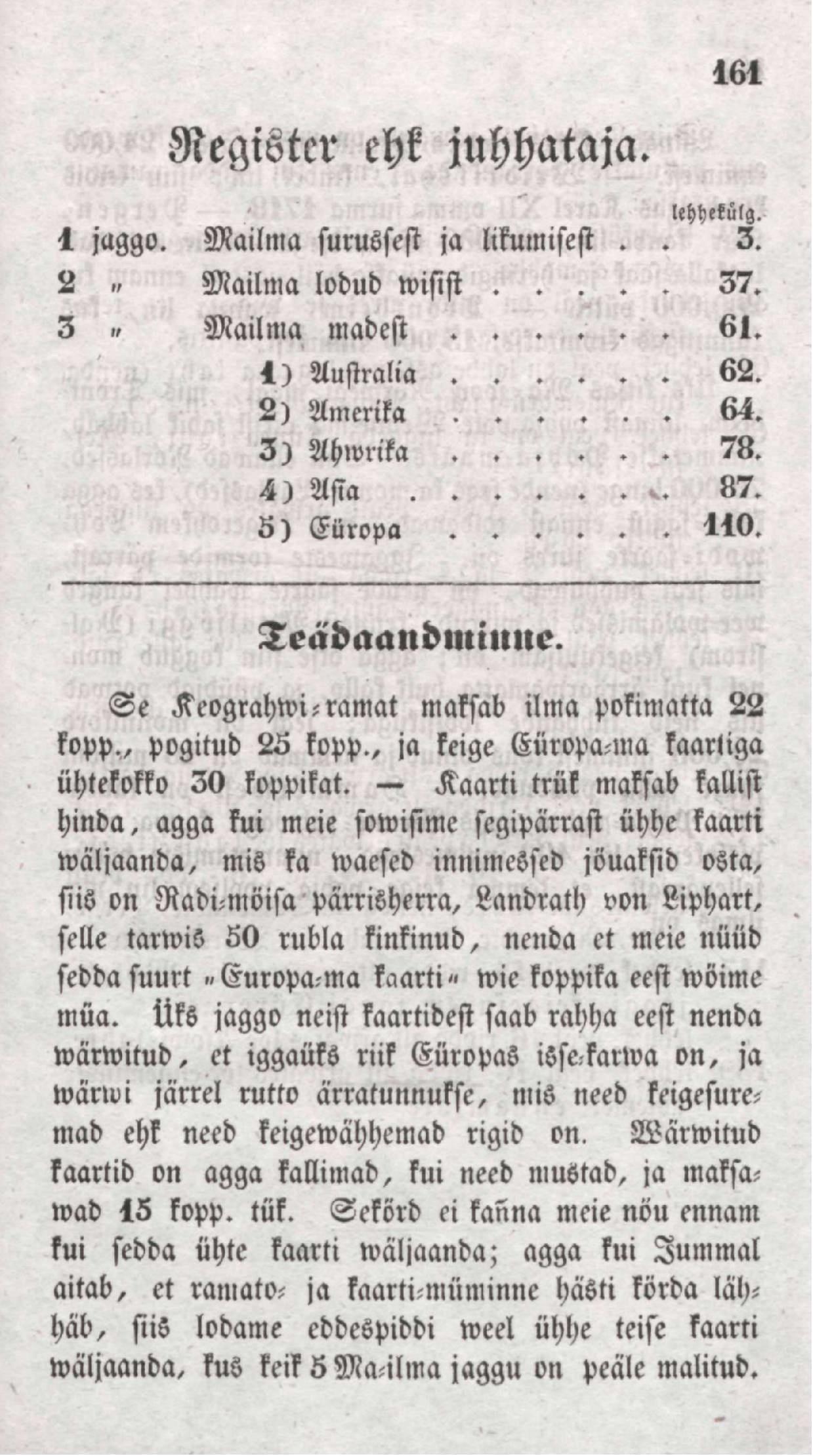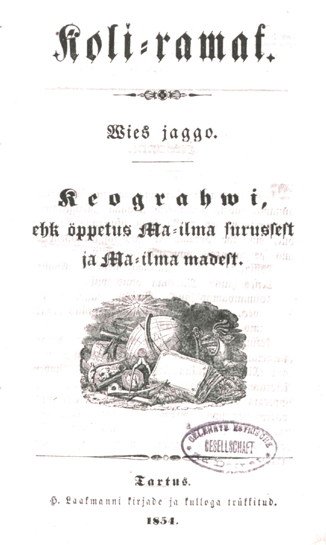 Esimene eestikeelse kooliraamatute sarja 5. jagu. Üks esimesi eestikeelseid geograafiaõpikuid - 1854