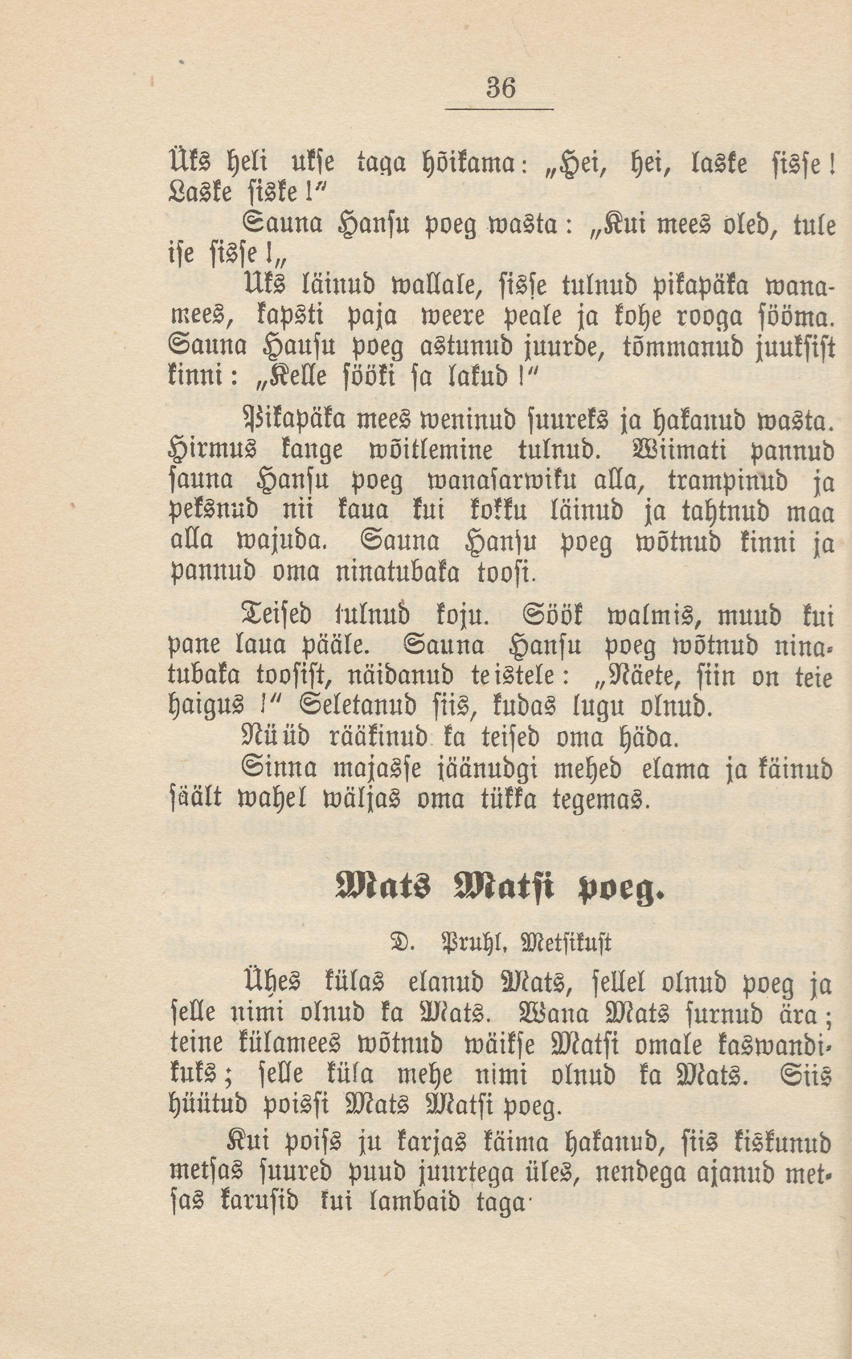 Raamatus on avaldanud näiteks Daniel Pruhli kirja pandud lugu „Mats Matsi poeg“, mis on mõjutusi saanud kümmekond aastat varem ilmunud M. Jaaksoni raamatus „Kawal Hans ja Wanapagan“ ilmunud loost. D. Pruhli (1840-1912) oli suur bibliofiil, kes rajas 1872. aastal Haljala kihelkonnas Metsiku külas vanima talurahvale mõeldud raamatukogu. Küllap oli selles kogus ka M. Jaaksoni välja antud raamat.