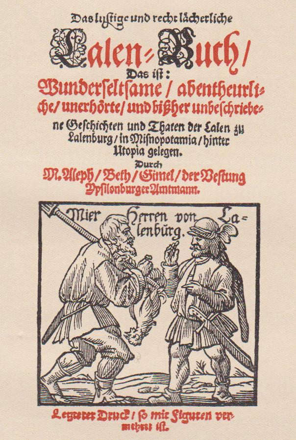 Vanim teadaolev väljaanne trükiti Strasbourgis 1597. aastal pealkirja all Lalenbuch. Siin oli linn tuntud kui Lalenburg ja selle elanikud nime all Lalen. Teine trükk, mis trükiti 1598. aastal, sai pealkirja Die Schildbürger. Algse kogumiku autor pole teada. Üks pakutud võimalikest autoritest on Friedrich von Schönberg (1543–1614), kes oli pärit Schildaust.