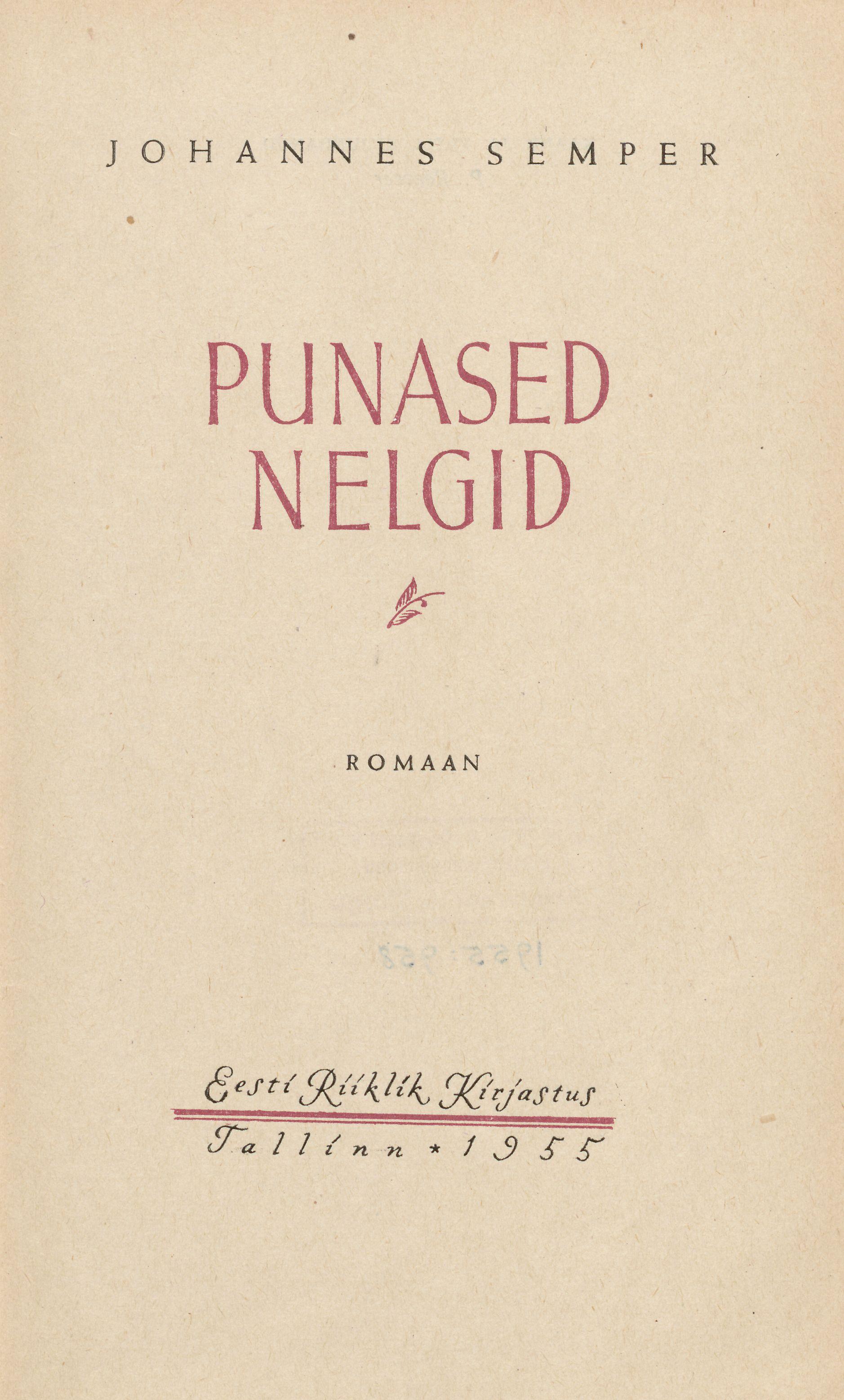 Johannes Semper, Punased nelgid, romaan - sulaaegne proosakirjandus