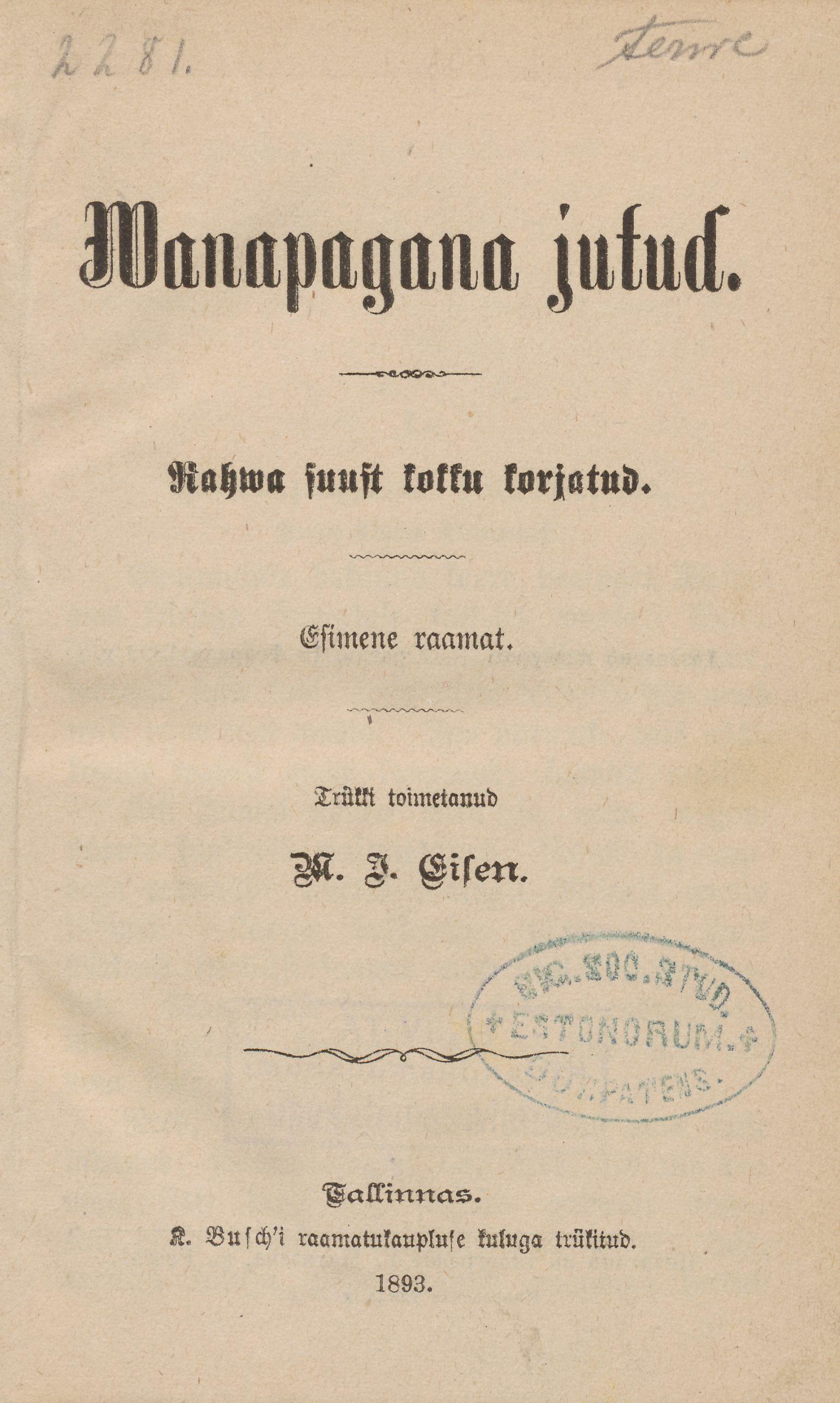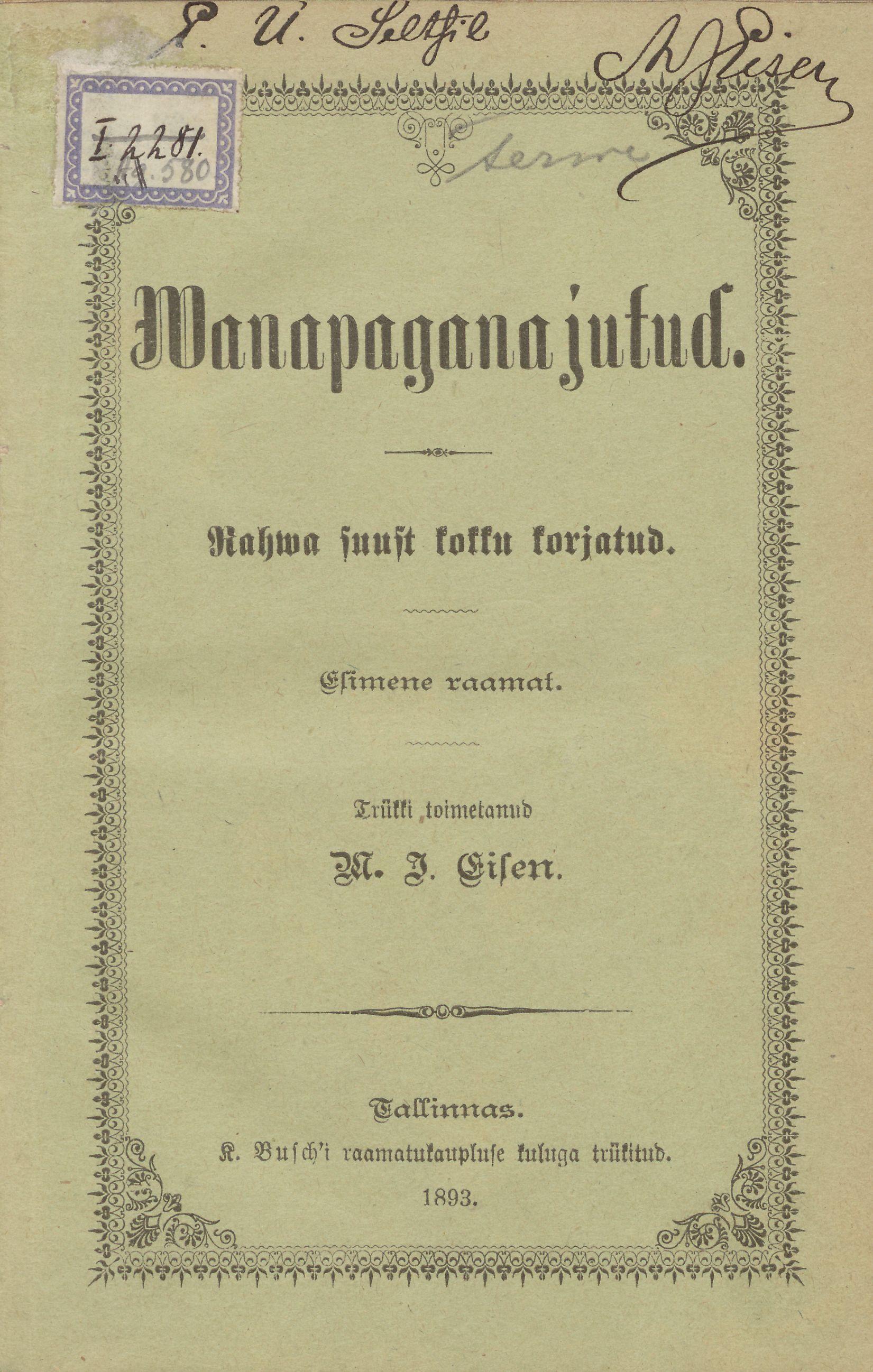 Wanapagana jutud. Rahwa suust kokku korjatud. Esimene raamat