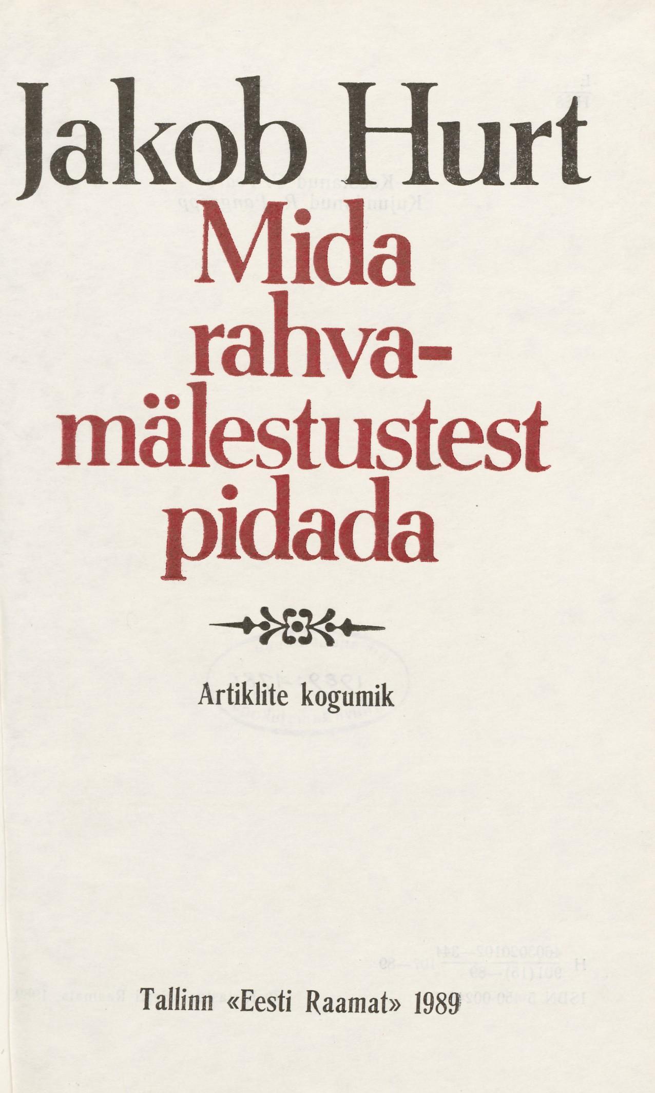 Autor: Hurt, Jakob, 1839-1907, koostaja Ülo Tedre