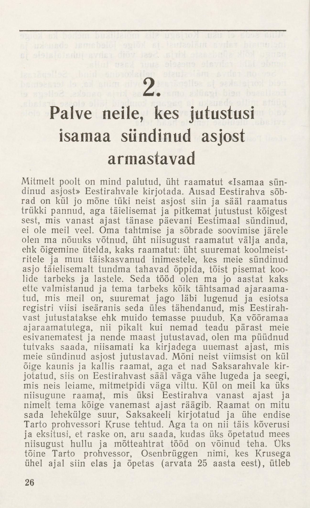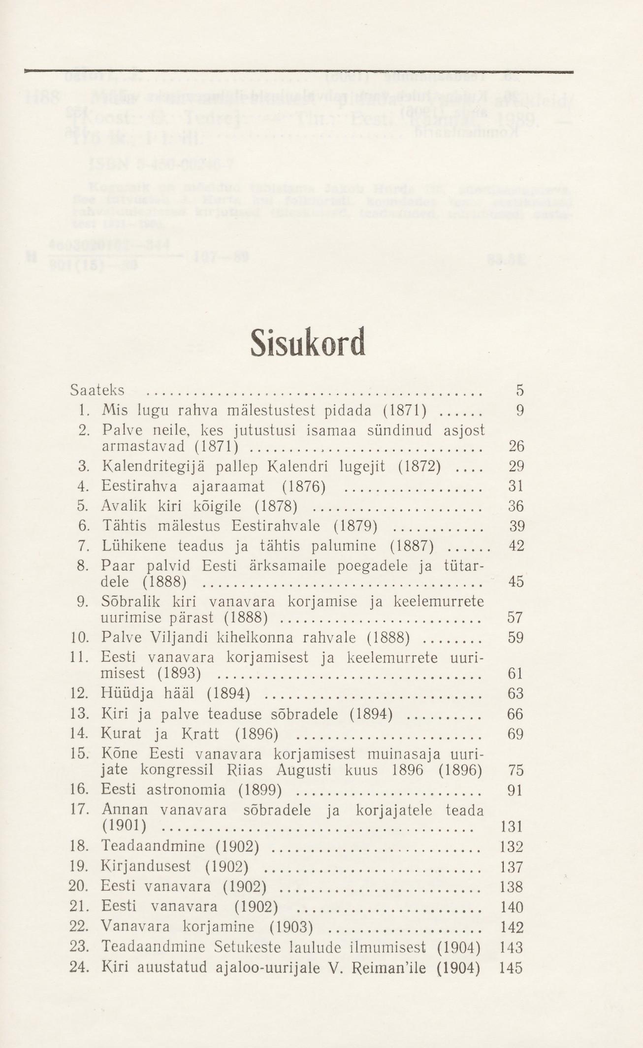 🖨 - Paar palvid ... (lk 45), Hüüdja hääl ... (lk 63), Kurat ja kratt (lk 69), Kõne eesti vanavara korjamisest ... () jne.