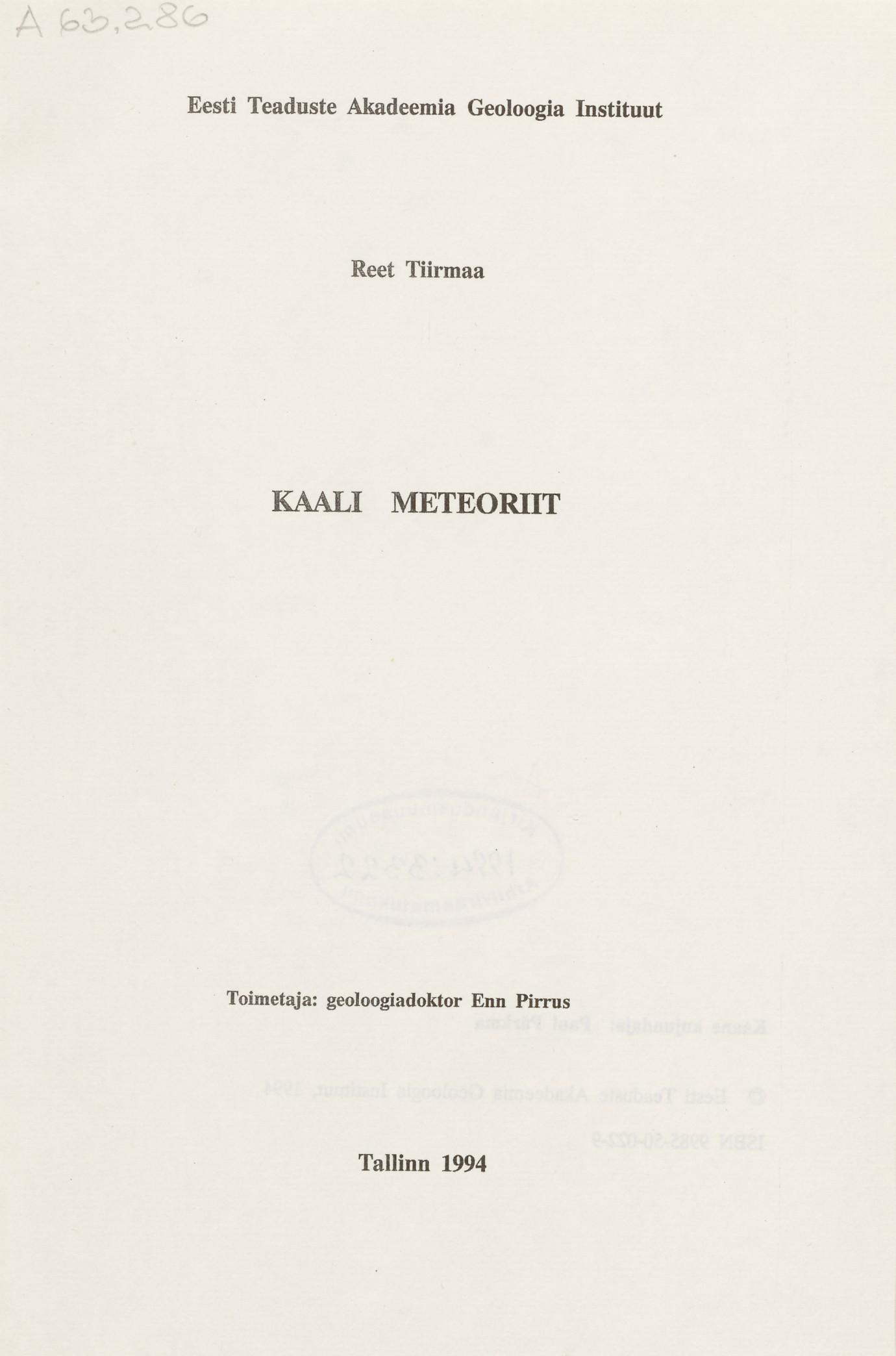 Kaali meteoriit - Reet Tiirmaa, 1994