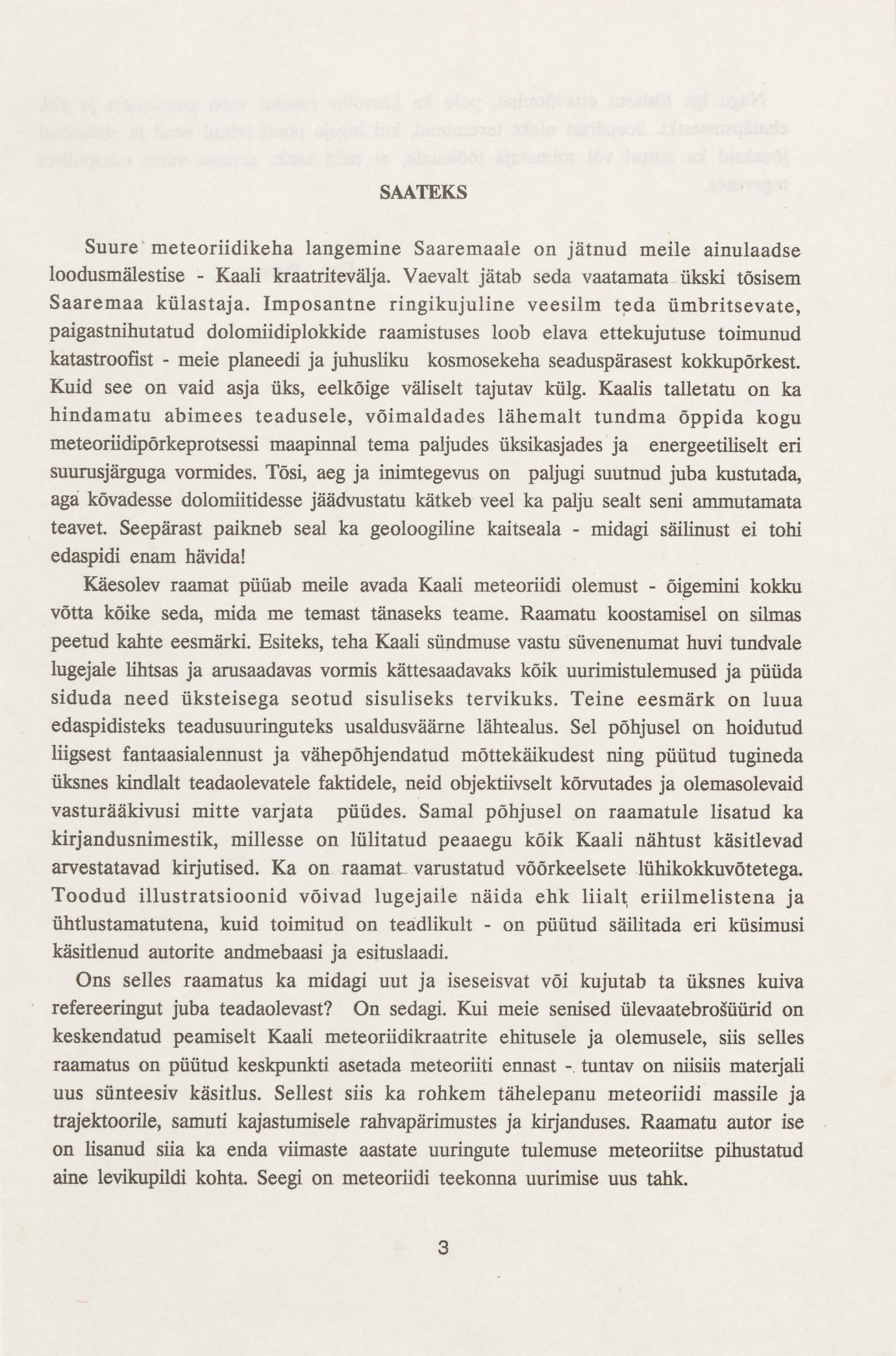 Arendatud ja uuendatud andmestikuga eelkõige geoloogiale keskendunud ülevaade Kaali meteoriidikraatritest nende uurijalt, sisaldab ka Agu Aaloe lühikese eluloo.