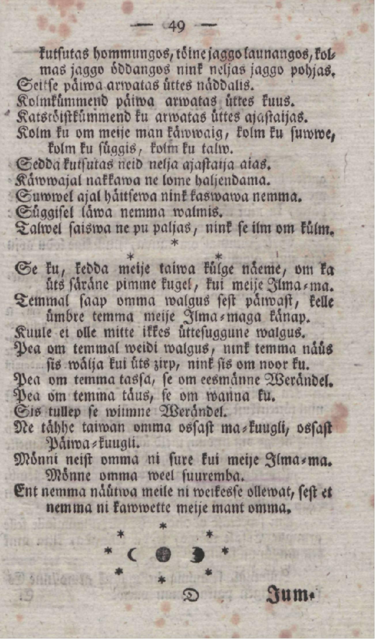Se Ku, kedda meije taiwa kĂŒlge nĂ€eme, om ka ĂŒts sĂ€rane pimme kugel (Marpurg 1805: 49)