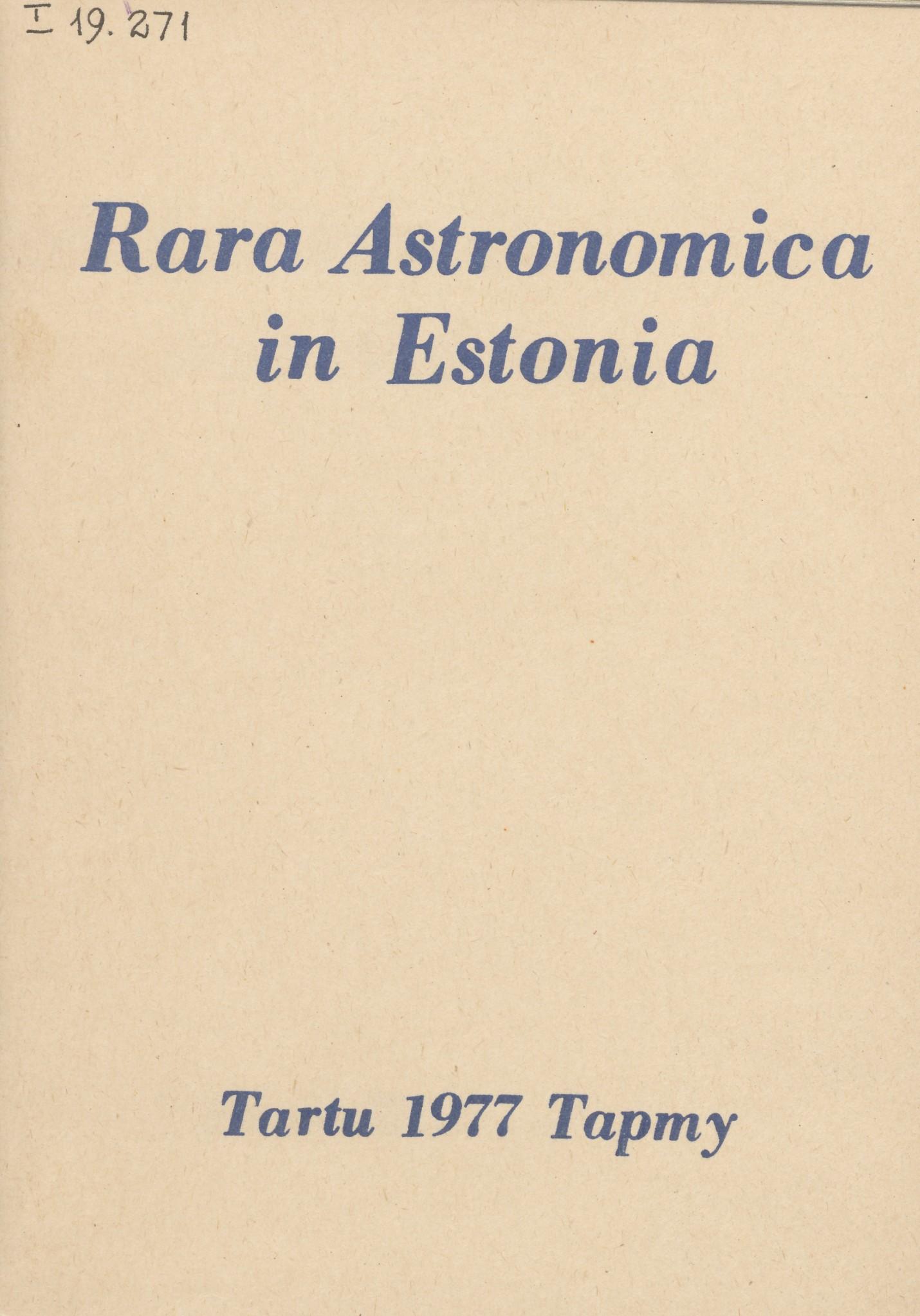 Rara Astronomica in Estonia = artiklite kogumik haruldasematest astronoomiamaterlalidest - 1977