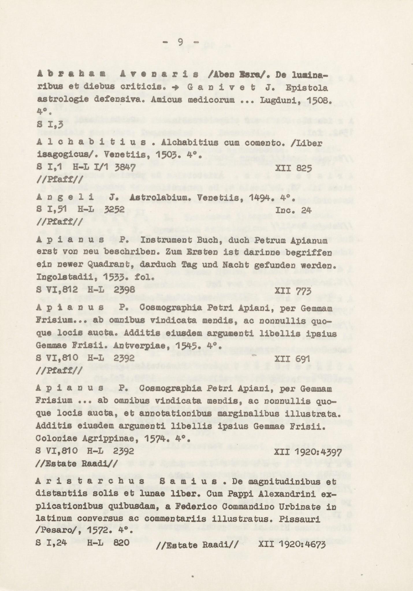📝 - Autorid: TÜ raamatukogu - O. Nagel, AAI raamatukogu - Heino Eelsalu ja Hilju Silvet, TA raamatukogu - K. Robert ja Heino Eelsalu, Briti astronoomide kirjad TÜ raamatukogus - H. Tankler ja Peeter Müürsepp (Bernhard Schmidti elulooraamatu autor, vt Vastutuulelaev).