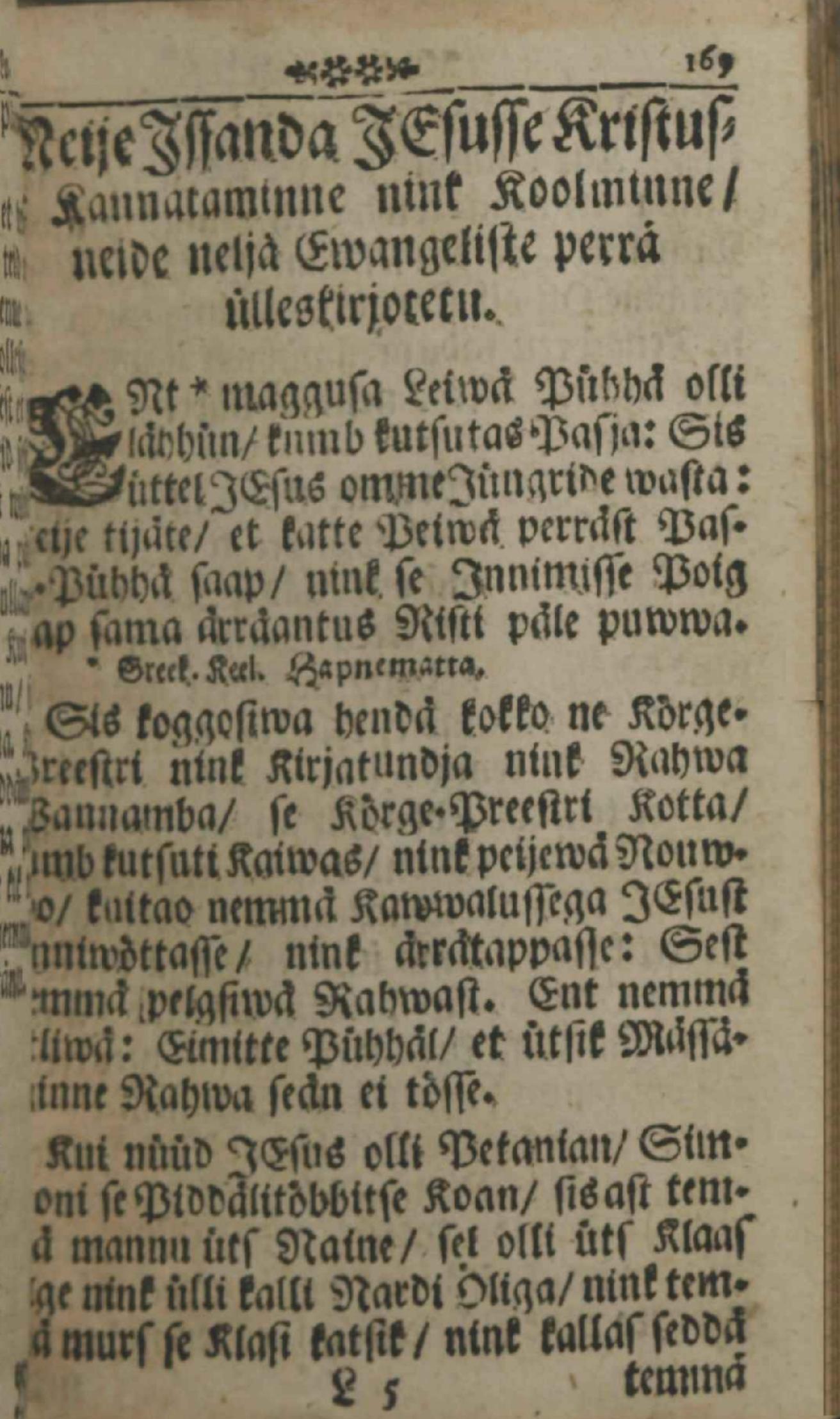 I. Kik Ewangeliumma- nink Epistli-Lu, kumbe eggäl Aig-Pühhäl Suril- nink muil Pühhil, kumma Ajastan tullewa, loetas nink selletetäs;