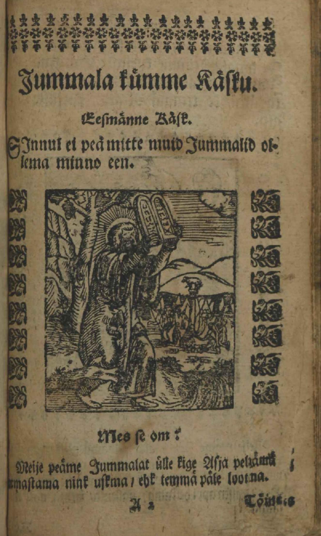 Käsiraamatu Tarto-Ma Kele Kässi Ramat... koosseisu kuulub esimene eestikeelne illustreeritud raamat: Önsa Luterusse Katekismus (1690)